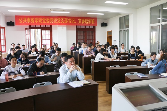 4月7日上午8:30,“公共事务学院党委党校第一期培训班——党支部书记、支委培训班”在成智楼108顺利开班。公共事务学院党委书记刘弢,校党委党校常务副校长高和荣教授,院党委副书记黄新华教授,校党委组织部康静宁,以及学院教工党支部书记、辅导员、学生党支部书记、支委出席仪式。开班仪式由院党委副书记林盛铨主持。