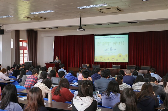 2017年4月14日,学院党委党校邀请到了厦门大学党委组织部副部长廖志丹做“践行‘四讲四有’,争做合格党员”的主题报告。廖老师在主题报告的开始,向同学们介绍了中共中央办公厅印发的《关于推进“两学一做”,学习教育常态化制度化的意见》。她还简要介绍了全国、福建省、厦门大学以及我校各学院的党员培训活动,提出引入网络直播,诗词大会等创新形式对“两学一做”学习教育的促进作用。廖老师引用习近平总书记对当代青年的寄语——“人生的扣子一开始就要扣好”,进入报告正文。正文第一部分为“思想入党:一生一世”。廖老师教育同学们,正确的入党动机很重要。同学们要积极接受党的教育熏陶,形成理性认识,提升自我觉悟,从而将党的事业上升为自己的信仰,为其奋斗终身。她举了《潜伏》和《人民的名义》的例子,说并不是所有人都能坚定理想信念并坚定一生的,但希望同学们能真正在党的事业中感受到责任感、使命感。廖老师在第二部分——“组织入党:一生一次”中向同学们讲解了入党的组织程序。并对在座的新党员和入党积极分子们说,在入党方面,“能力有大小,态度决定一切”。第三部分为“教育培养:一言一行”。廖老师提出要运用学生互动社区、主题教育网站等新媒体形式加强党员教育培养,并通过坚持“三会一课”制度和民主评议制度等加强党员管理。第四部分“组织生活:一点一滴”中,廖老师介绍了学校一些优秀党支部的立项,列举了学生公寓党员服务站以及公共事务学院“半月谈”等活动,并鼓励党员们发挥在学术研究等各方面的积极作用。廖老师的主题报告以“不忘初心,继续前进”结束。
