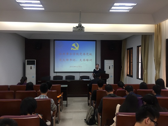 4月15日,学院党委党校举办学生党支部书记、支委培训班举行培训活动,由学院党务秘书黄旻敏主讲。在培训中,黄老师以党支部工作的具体操作规范、程序培训为主题,对参加培训的党支部书记、支委进行专业的业务培训。黄老师结合党中央、校党委对党支部工作的要求,根据实际工作中学院党支部开展活动过程中存在的问题进行剖析,细化学生支部的工作内容。整个培训持续两个小时,结合相关的工作案例,提升了在座党支部书记和支书的工作能力。