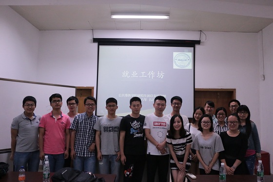2016年5月7日19:00,公共事务学院研究生团总支在成智楼103成功举办“就业工作坊”,本次活动邀请2013级毕业生丁伟航、杨雅真、王佳鑫和刘可可作为嘉宾,他们分享了各自的求职和求学经历。到场的还有各年级、各专业的同学们,培训部干事黄雪飞主持此次交流会。