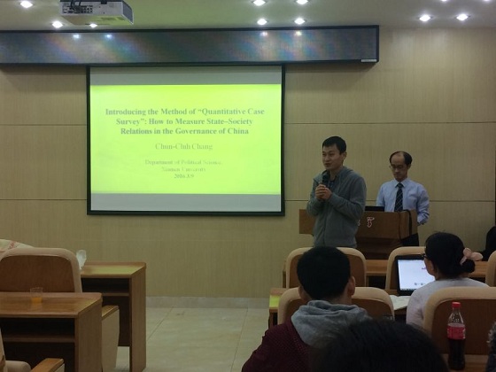 2016年3月9日,政治系“非常政点”学术沙龙(第六期)在联兴楼207会议室举行。张钧智老师做了“量化个案调查”研究方法:如何测量治理议题当中的国家社会关系的主题报告。学院教师、硕博研究生等三十余人参与了研讨。