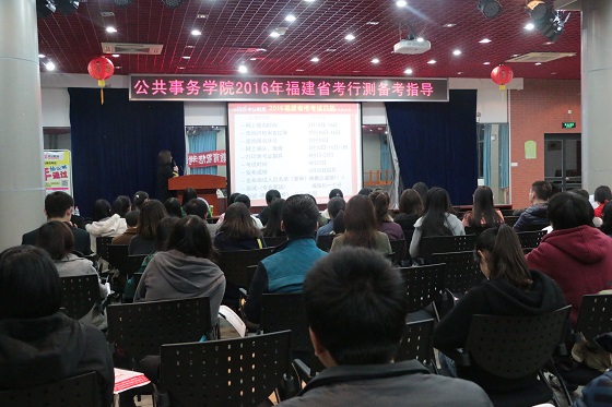 公共事务学院2016年福建省考行测备考指导讲座于3月15日在厦门大学自钦楼二楼多功能厅成功举办。为了帮助厦大学子更有把握地走进行政队伍,继公务员考试备考讲座之后,公共事务学院再度携手中公教育,为莘莘学子精心准备了本次讲座。本次活动由厦门大学公共事务学院团委主办,公共事务学院研究生团总支承办,厦门中公教育协办。中公名师柳晓丽老师应邀为同学们在行测备考方面指点迷津。