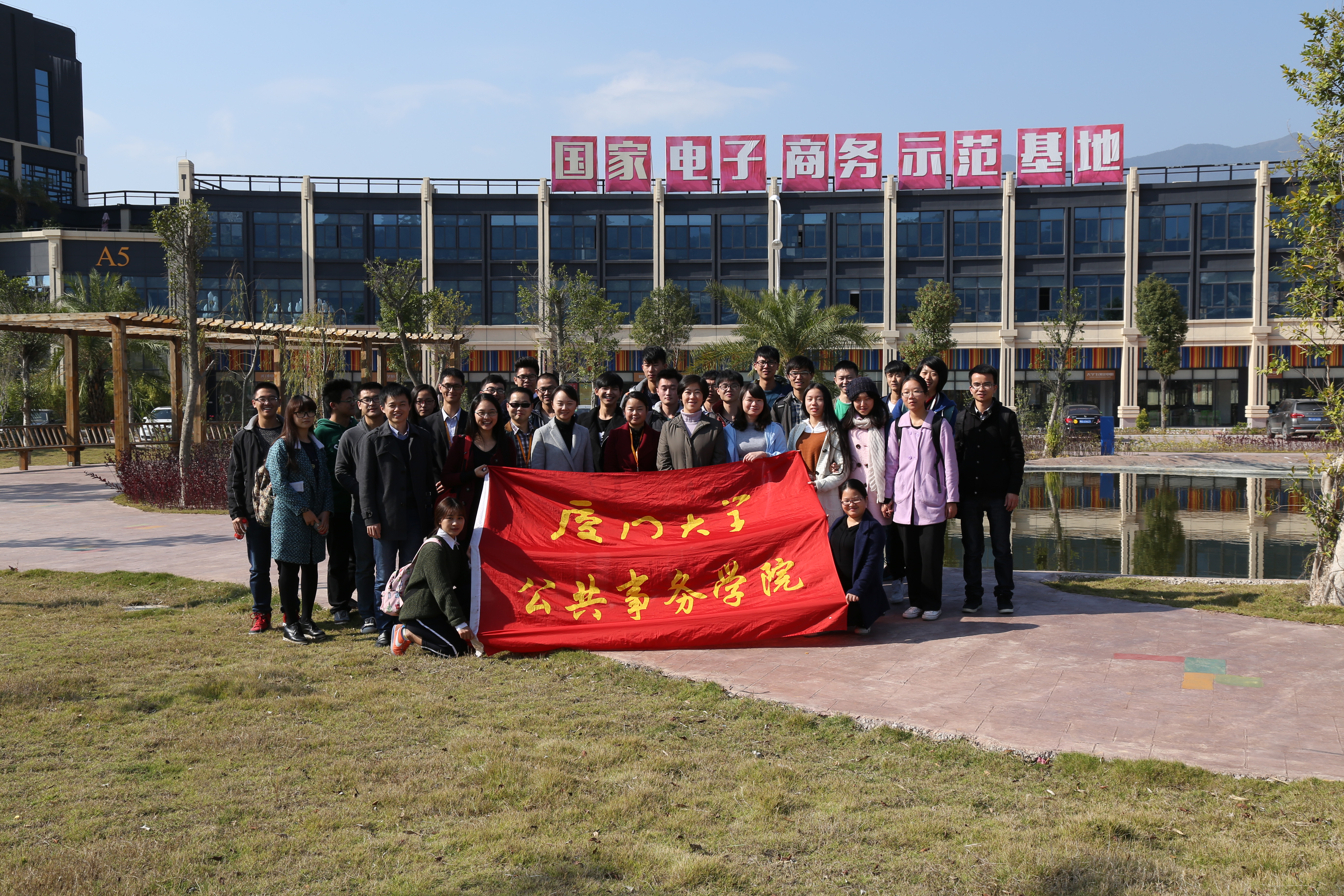 2015年12月18日,厦门大学公共事务学院联合厦门大学毕业生就业创业指导中心,组织有创业意向的学生到福建省规模最大的电商产业园区—弘桥智谷电商产业园参访。学院党委副书记赵晓慧、校就业指导科副科长林智敏、学院团委书记徐莹带队,来自全校8个学院26名本、研学生参与了此次活动。弘桥智谷电商产业园网商学院院长刘俊宇、副院长胡超平、总监雷荣等热情接待了来访的师生。