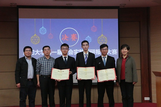 2015年12月27日,厦门大学第一届社会实践调研报告大赛决赛在克立楼报告厅举行。来自全校6个学院的10支实践队伍进行了现场答辩,200余名师生观摩了比赛。公共事务学院党委副书记黄新华教授、罗思东教授、李艳霞教授、吕志奎副教授和朱林彬老师担任专家评委。校团委副书记葛郝锐、教务处实验与电教管理科副科长杨建波、公共事务学院党委副书记赵晓慧、团委书记徐莹、建筑与土木工程学院辅导员林婕参会。