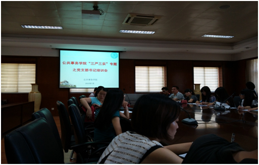 7月13日下午,公共事务学院党委召开“三严三实”专题之党支部书记培训会,学院党委书记刘弢主持会议。公共事务学院全体教职工党员,学生党支部书记、党支部委员参加了培训会。