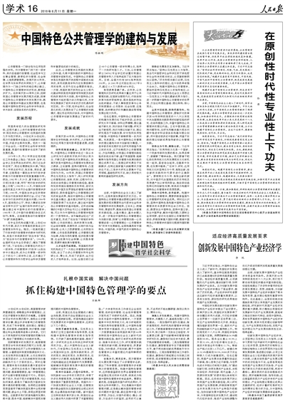 “公共治理”学科(群)是我校正在建设的一流学科(群)之一。6月11日出版的《人民日报》第16版(学术版)“构建中国特色哲学社会科学”栏目刊登了我校“公共治理”一流学科建设项目首席专家、“长江学者”特聘教授、公共政策研究院院长陈振明教授题为“中国特色公共管理学的建构与发展”的观察与思考文章。
