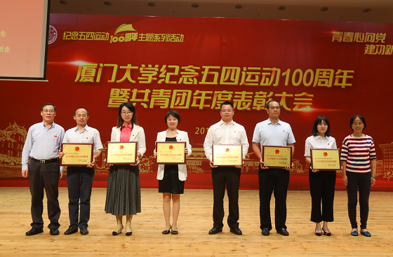 为了树立优秀典型,发扬新时代团员青年勇担青春使命,敢于拼搏追梦的精神,5月5日下午,纪念五四运动100周年暨共青团年度表彰大会在我校科学艺术中心报告厅举行。公共事务学院团委获评2018年度厦门大学五四红旗团委;2016级本科生石浩获评“厦门大学十佳共青团员”;2016级本科行政管理团支部获评“厦门大学五四红旗团支部标兵提名”;2017 级本科生一班团支部、2017级社会学与社会工作系硕士生团支部、2018 级公共管理系硕士生团支部获评“厦门大学五四红旗团支部”;蓝浦城等6名同学获评“厦门大学优秀团支部(团总支)书记”;闫海等30名同学获评“厦门大学优秀团员”。