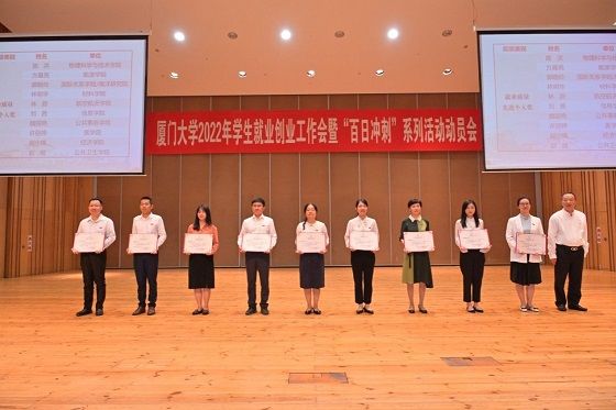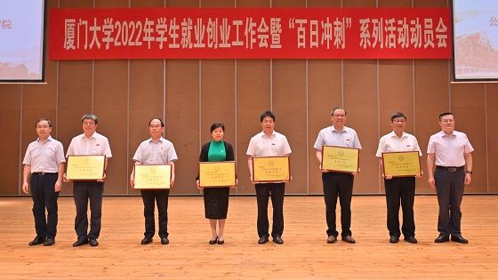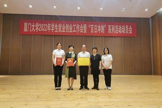 近日,学校召开2022年学生就业创业工作会暨“百日冲刺”系列活动动员大会,评选表彰了2021年学生就业创业工作先进单位和先进个人。我院荣获厦门大学2021年学生就业创业工作先进单位,院党委副书记魏丽艳获就业质量先进个人奖,院团委副书记蒋慧琼获就业进步先进个人奖。