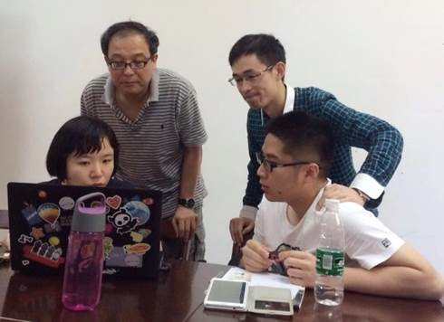(图为张光教授与所指导研究生讨论学术,右上为其博士生游宇)