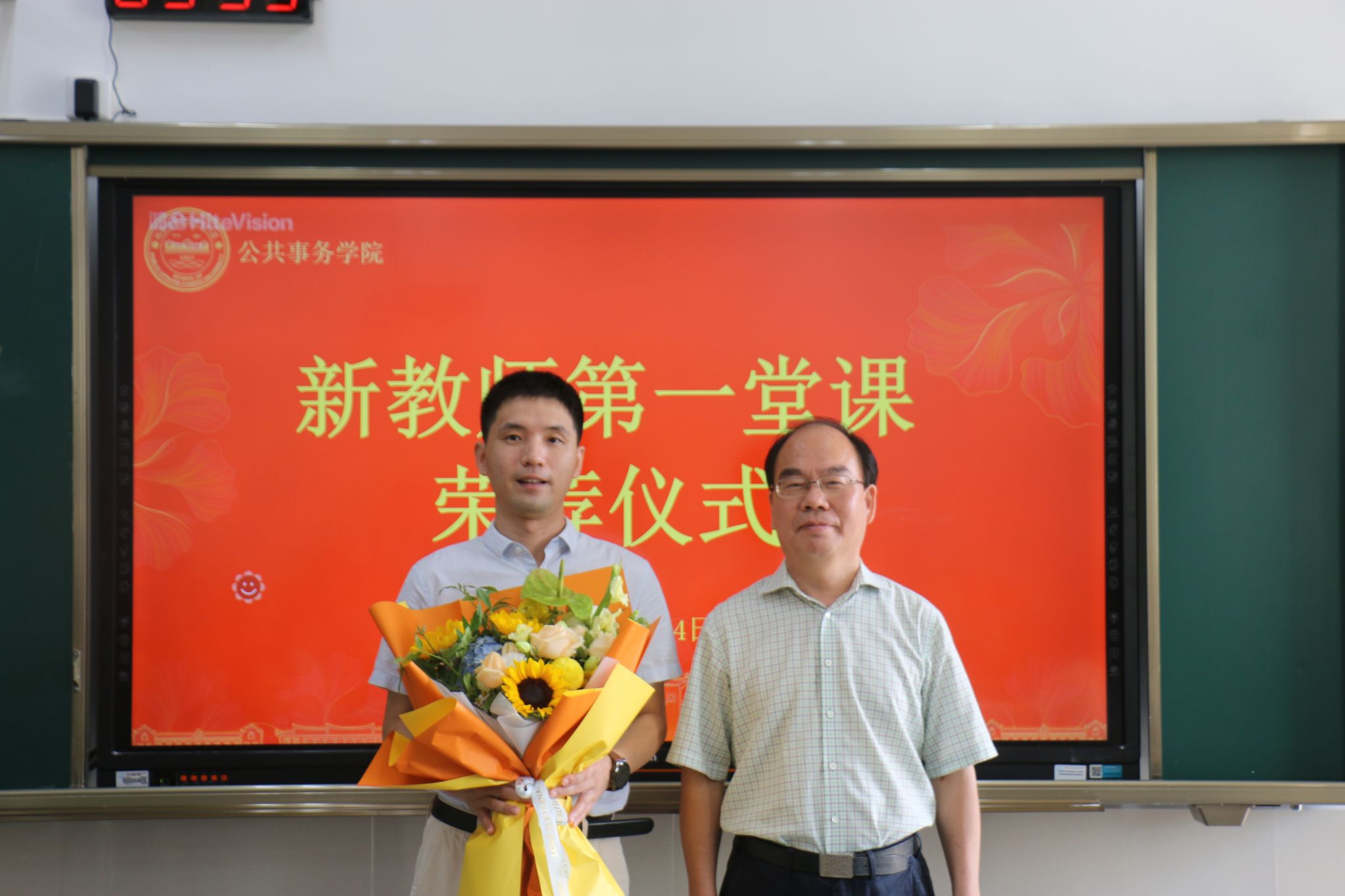 最后,学生代表为张翔教授献花祝福,在同学们热烈的掌声中,“第一堂课”正式开启。