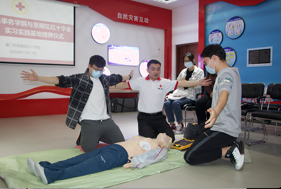 为深入学习贯彻党的二十大精神,探索新时代“共育共建共成长”人才培养模式,整合人才资源和社会资源,形成资源共享、优势互补、合作共赢发展新局面,11月17日上午,厦门大学公共事务学院与厦门市思明区红十字会在厦门市思明区应急救护培训中心成功举行“厦门大学公共事务学院实习实践教育基地”签约授牌仪式。