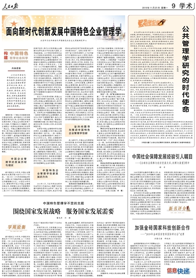 继去年6月11日出版的《人民日报》第16版(学术版)“构建中国特色哲学社会科学”栏目约稿刊登我校“公共治理”一流学科建设项目首席专家、“长江学者”特聘教授、公共政策研究院院长陈振明教授题为“中国特色公共管理学的建构与发展”一文之后,日前(11月25日)出版的《人民日报》第9版(学术版)“大家手笔”栏目再次约稿陈振明教授发表题为“公共管理学研究的时代使命”的学术思考文章。