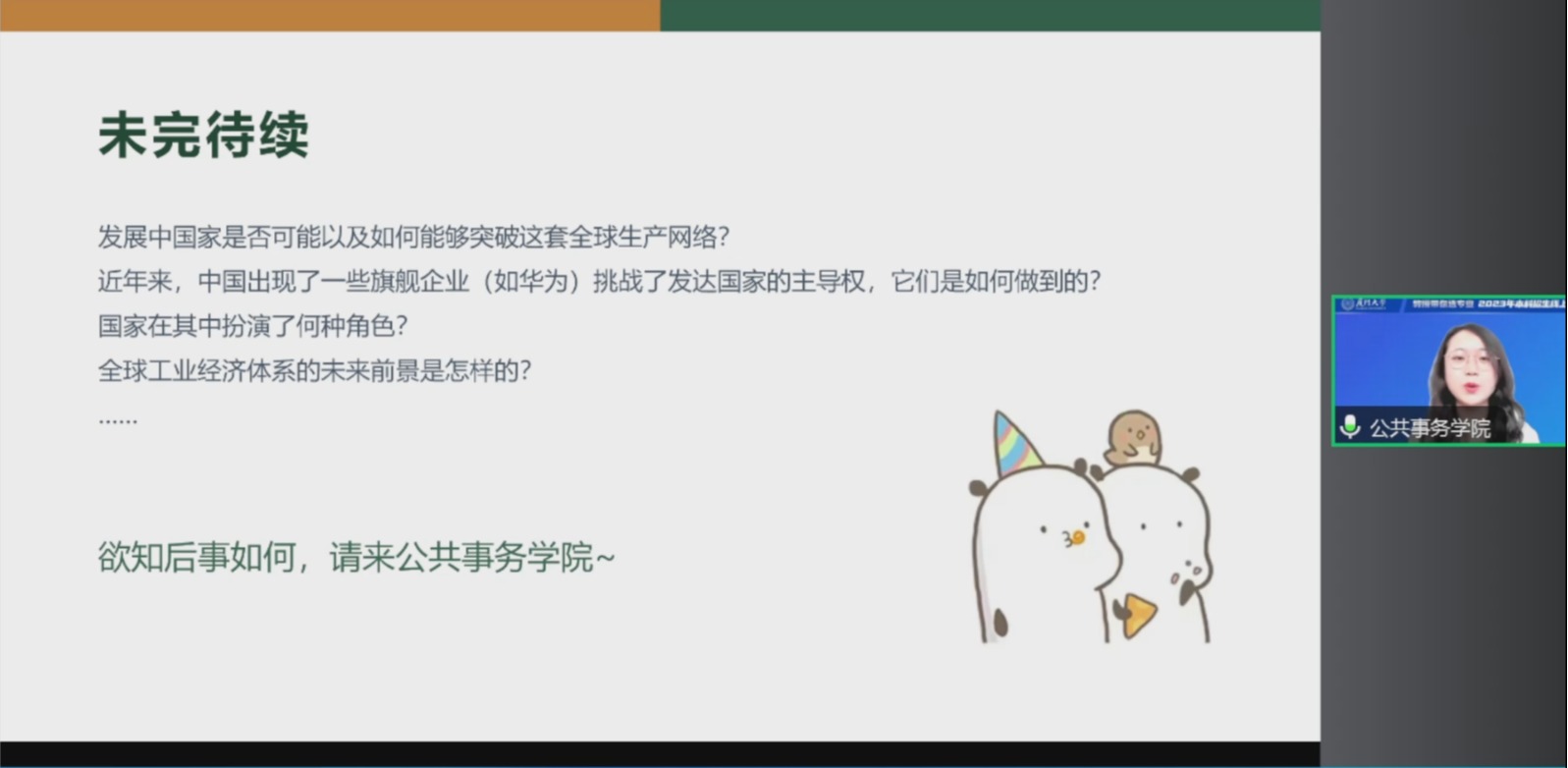 本次的线上宣讲虽然只有短短的一个小时,但是各位教师带领考生与家长充分感受了政治学与行政管理学的魅力所在。“立学公事、立心天地、立命生民”,洞悉古今中外各国政治之奥秘,探索家国民生重大发展之逻辑。选择公事,在不确定中找寻确定的方向;拥抱公事,在不确定中创造无限可能。欢迎各位考生报考厦门大学公共事务学院!