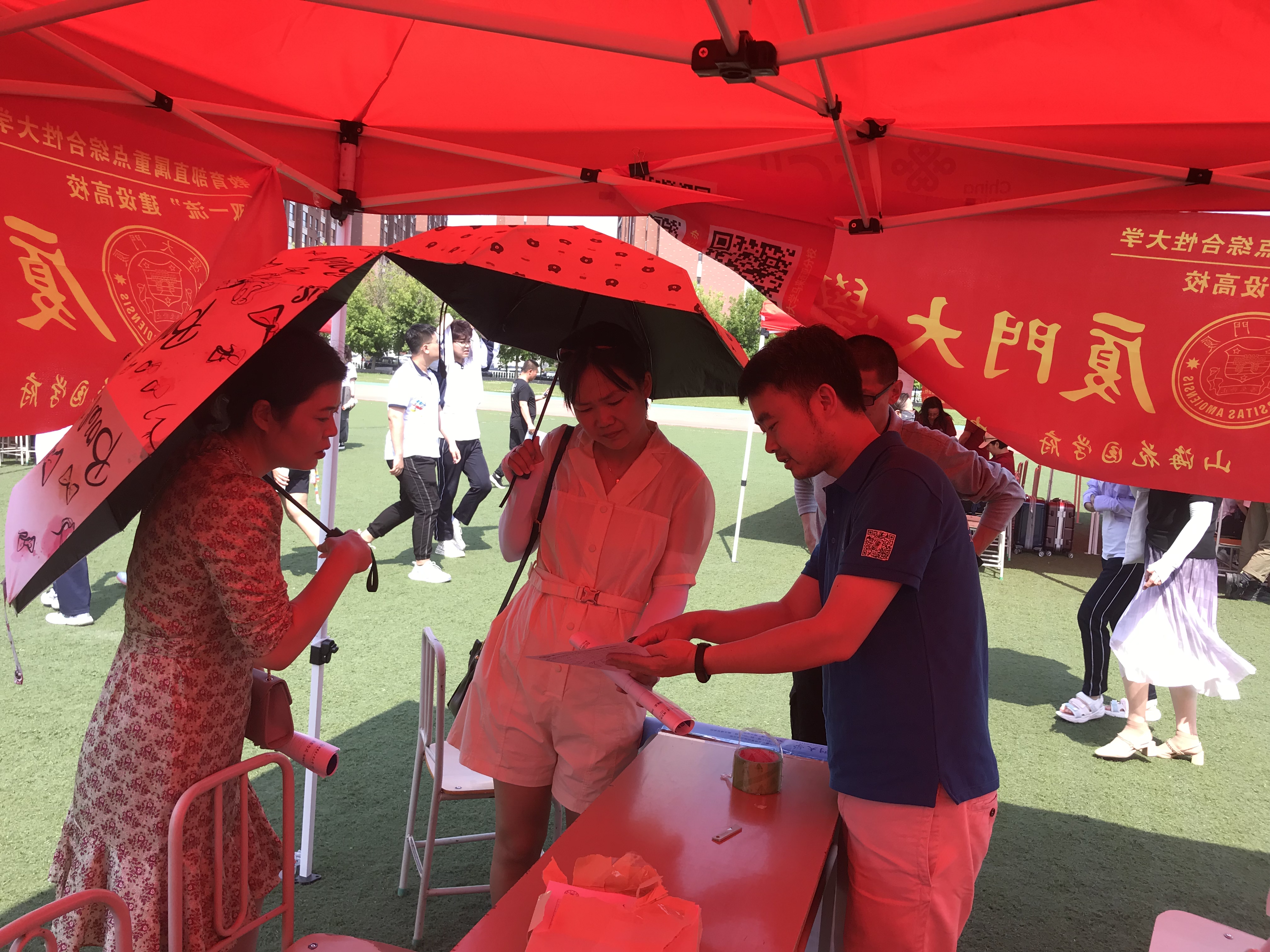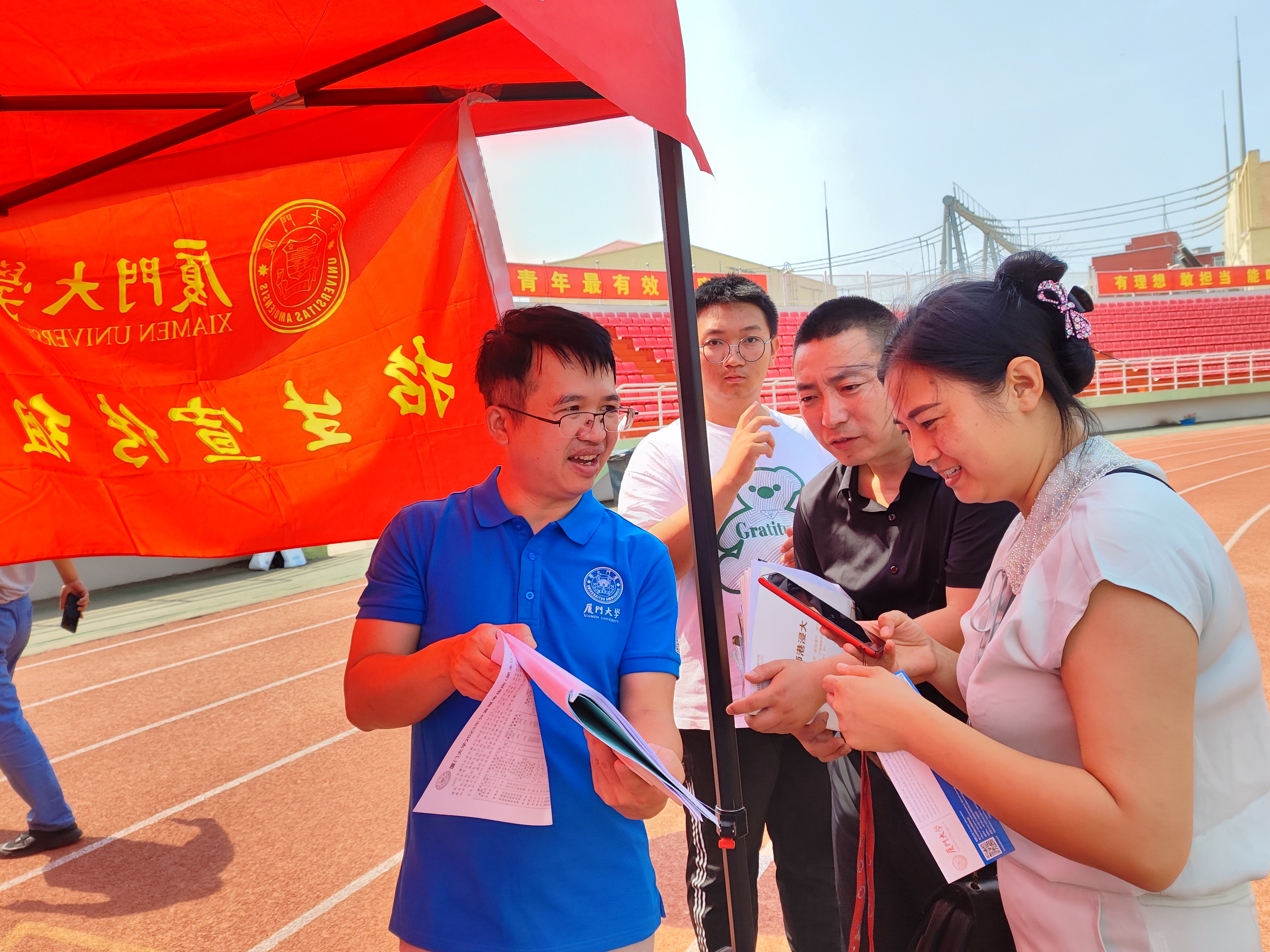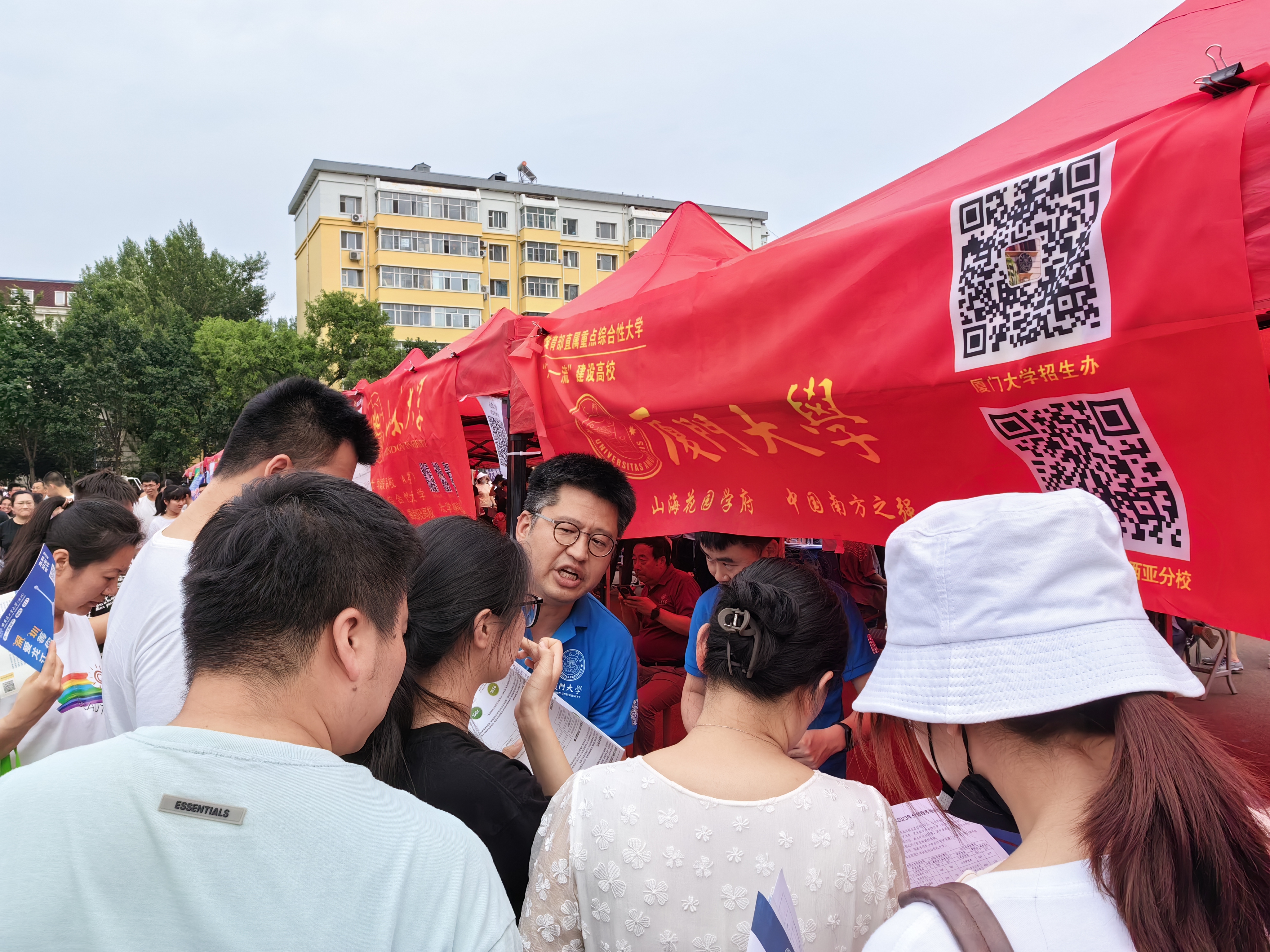 6月25日上午,招生组前往兄弟院校哈尔滨工业大学参加大型综合性招生宣传活动,几个小时内,前来咨询的考生和家长络绎不绝,每位老师用心倾听、耐心解答,招生组带去的2000份黑龙江分专业分数情况以及精心准备的几百份厦大书签都被领取一空。下午,招生组另一分队来到牡丹江市第一高级中学和优秀学子面对面交流,学子们纷纷表达了对厦大的向往与憧憬。