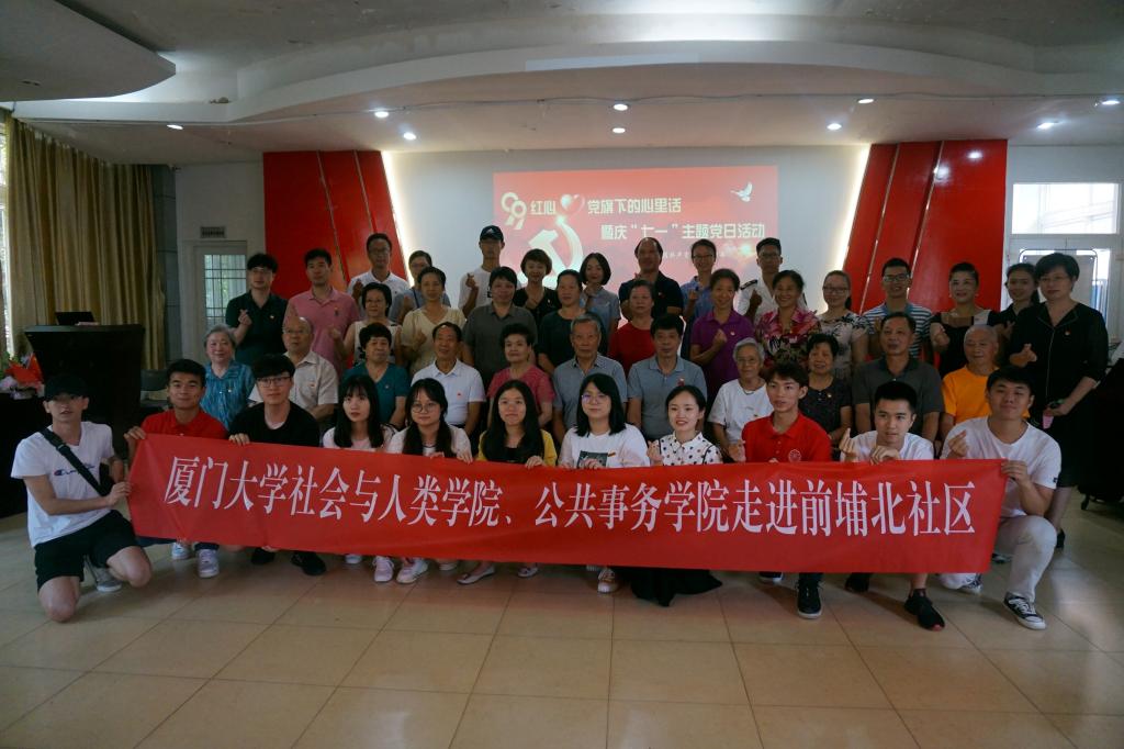 6月29日,公共事务学院、社会与人类学院与前埔北社区共同举办了“99红心·党旗下的心里话”代际故事分享会暨庆“七一”主题党日活动。公共事务院党委副书记林盛铨、社会与人类学院党委副书记毛毛,公共事务学院团委书记徐莹、团委副书记苏毅辉,社会与人类学院团委书记石林伟、辅导员冉丽莎带领学生党员代表一同走进社区,与前埔北社区的老党员们面对面交流,共同参加庆“七一”主题党日活动。