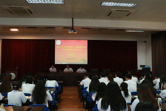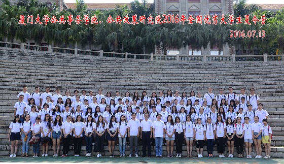 为较强优秀大学生之间的交流,选拔优秀学生进一步学习深造,厦门大学公共事务学院、公共政策研究院2016年全国优秀大学生夏令营于2016年7月13日举办。公共事务学院院长陈振明教授、副院长胡荣教授、党委副书记赵晓慧出席开营仪式。仪式由胡荣教授主持。