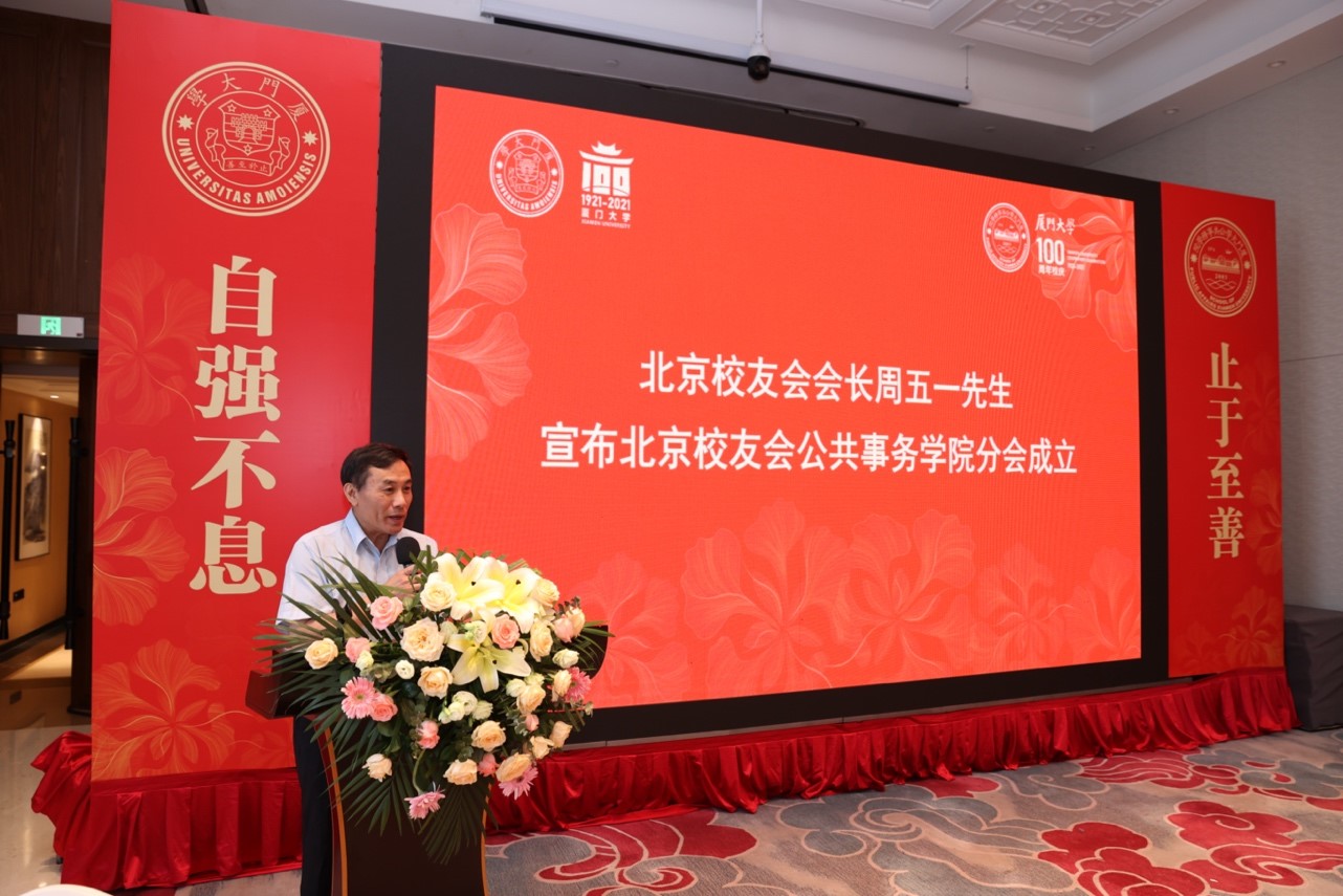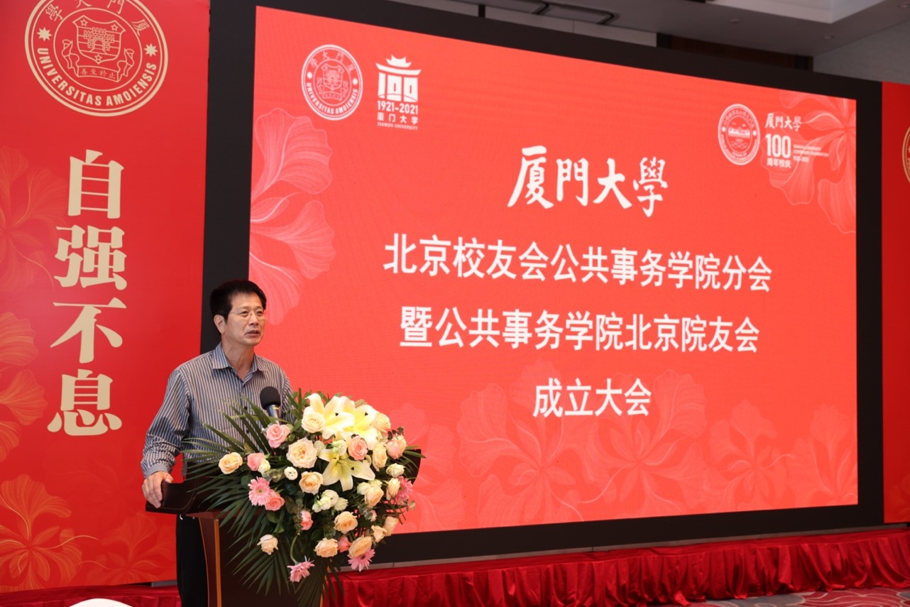 孙亚夫讲述了厦门大学北京校友会的历史,指出厦门大学北京校友会公共事务学院分会作为北京校友会的第16个分会,要起到联络北京校友感情,建立沟通桥梁的作用,希望公共事务学院分会能做好服务校友、回馈社会的各项工作,不断开拓创新,取得新的成绩!