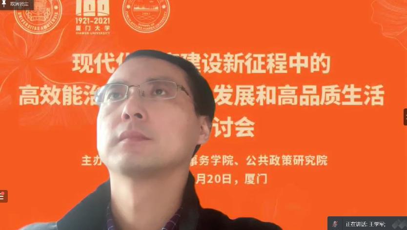 为深入学习领会和贯彻落实习近平总书记“七一”重要讲话精神和党的十九届六中全会精神,由厦门大学“公共治理”双一流学科建设项目、国家社科基金重大项目“强化制度执行力研究”支持,厦门大学公共事务学院、公共政策研究院主办的“现代化国家建设新征程中的高效能治理、高质量发展和高品质生活”学术研讨会于2021年11月20日在厦门大学顺利召开。本次会议采用线上线下相结合的形式,来自清华大学、中国人民大学、浙江大学、上海交通大学、四川大学、兰州大学、重庆大学、中南大学、西北大学、华中师范大学、华侨大学和厦门大学等高校的专家学者,以及中国人民大学出版社、新华文摘杂志社、中国社会科学杂志社、中国行政管理杂志社、中国人民大学学报杂志社、中国高校社会科学杂志社、行政论坛杂志社、学术研究杂志社、东南学术杂志社和福建日报社等报刊的主编、编审或编辑近百人参加了此次研讨会,线上观看人数近两千人。