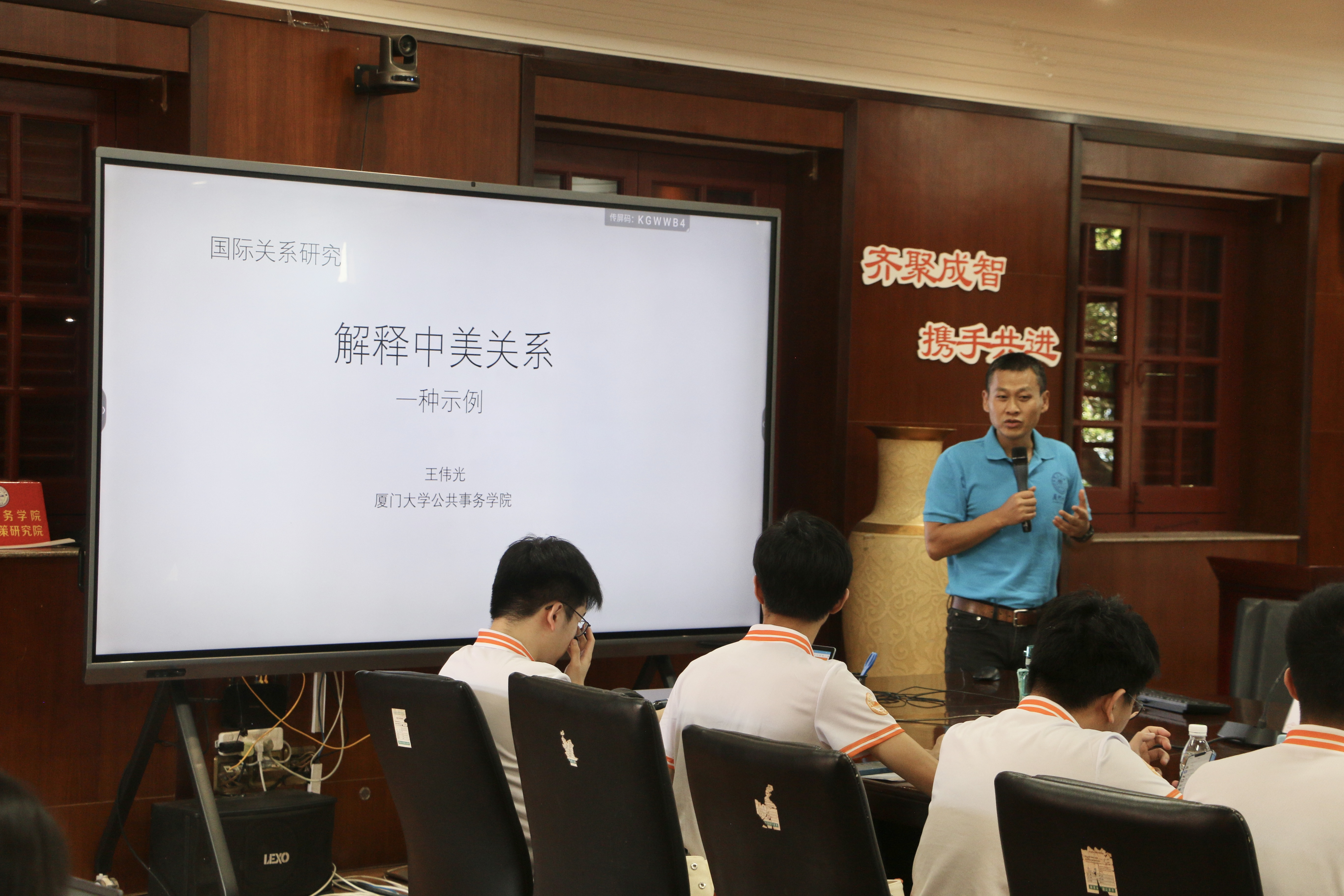 在政治学系的学术沙龙中,林雪菲教授首先介绍了政治学系的基本情况,其中包括学科建设、研究方向、课程设置、学术活动、实践调研、就业前景等;王伟光教授以解释中美关系为例,根据时期划分详谈了影响中美关系的政治、经济、军事等因素以及背后形成的权力结构,并就中美关系的未来走向提出了自己的见解;张翔教授围绕“组织权威”,将政治学带入到公共政策的研究情境中,探讨了中西方公共政策过程的结构差异,介绍了既有研究的两种视角,最后提出了“叙事与共识”的新视角。现场提问环节,营员们就学术上的论文研究、中西政治观差异,以及未来学习中的导师选择、专业考核等方面积极踊跃提问,与老师展开了深入浅出的对话与互动。