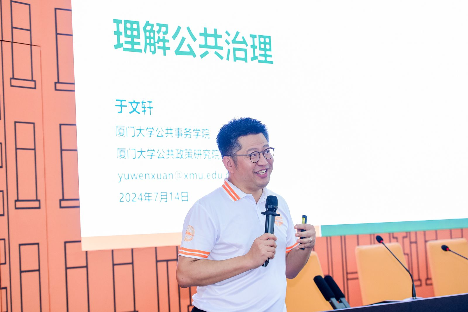 于文轩院长作学科导航,他以“理解公共治理”为核心主题,从“什么是公共治理”、“公共治理学科的历史发展”、“公共治理的现在与未来”、“公共治理的机遇与挑战”四个角度对同学们进行详细分析。他指出:学院将致力于培养具有全球视野和家国情怀的通才管理者和面向人工智能时代的全球领导者。在发言中,于文轩院长特别强调:本次夏令营不仅提供全国优秀大学生的交流平台,还将举办全国大学生第一届公共治理人工智能提示词邀请赛,紧跟学科前沿,促进人工智能与公共治理学科的融合。