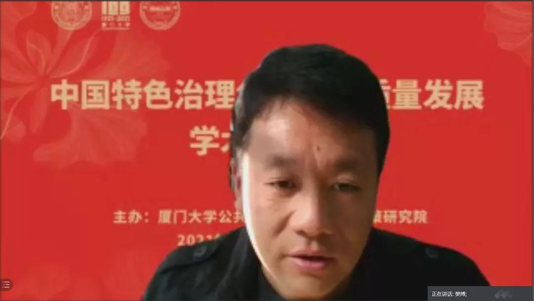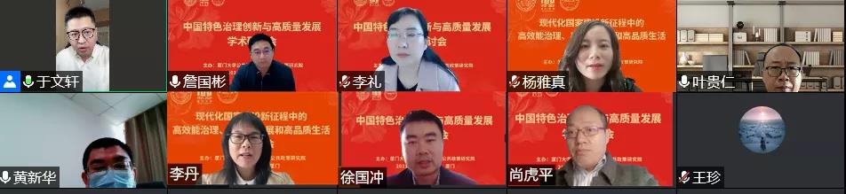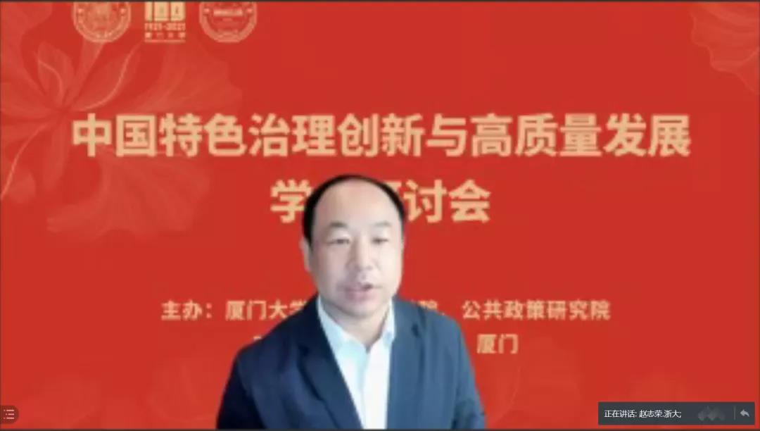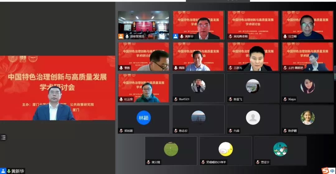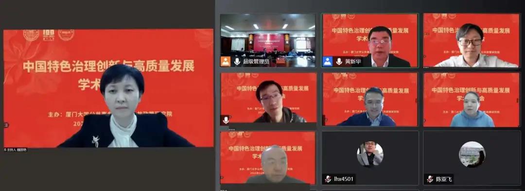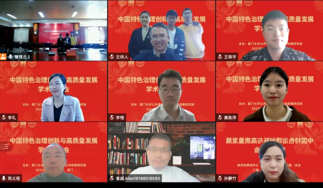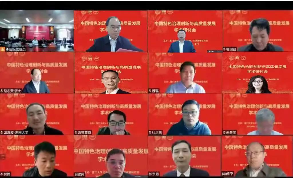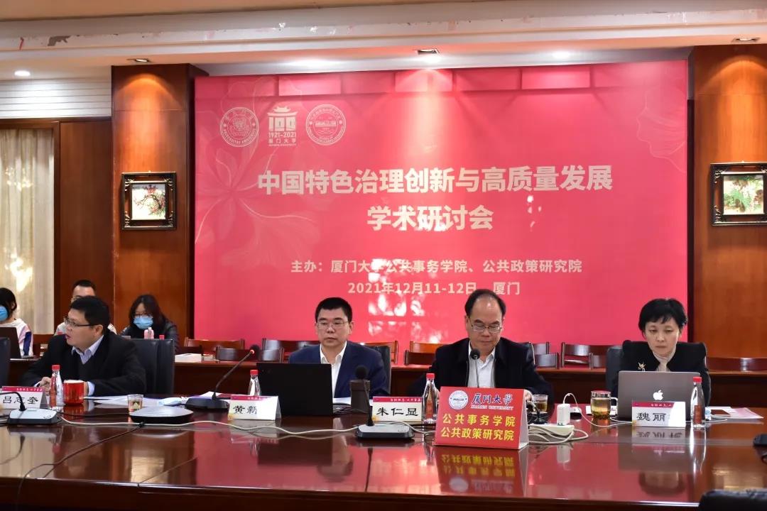 中国共产党自成立以来,面对独特的国情和发展任务,找到了适合中国发展的独特治理模式,形成了一系列中国特色治理创新经验,积累了显著的制度优势。为学习贯彻党的十九届六中全会精神,研讨中国特色治理创新推动高质量发展的内在机理与运行逻辑,探讨不同领域或层面的治理创新与高质量发展之间的关系,由厦门大学“公共治理”双一流学科建设项目、国家社科基金重大项目“强化制度执行力研究”、厦门大学公共事务学院繁荣计划项目支持,厦门大学公共事务学院、公共政策研究院主办的“中国特色治理创新与高质量发展”学术研讨会,于12月11日-12日在厦门大学召开。会议采用线上线下相结合的形式,来自清华大学、北京大学、中国人民大学、浙江大学、上海交通大学、复旦大学、武汉大学、中山大学、南开大学、兰州大学、山东大学、重庆大学、湖南大学、华南理工大学、南京审计大学、中共湖南省委党校、广东财经大学和厦门大学等机构的80多位专家学者和学生,以及《管理世界》《中国行政管理》《中国高校社会科学》《浙江社会科学》《探索与争鸣》《江苏行政学院学报》《理论学刊》等杂志社的多位编辑参与了会议。研讨会开幕式由厦门大学公共事务学院院长朱仁显教授主持。