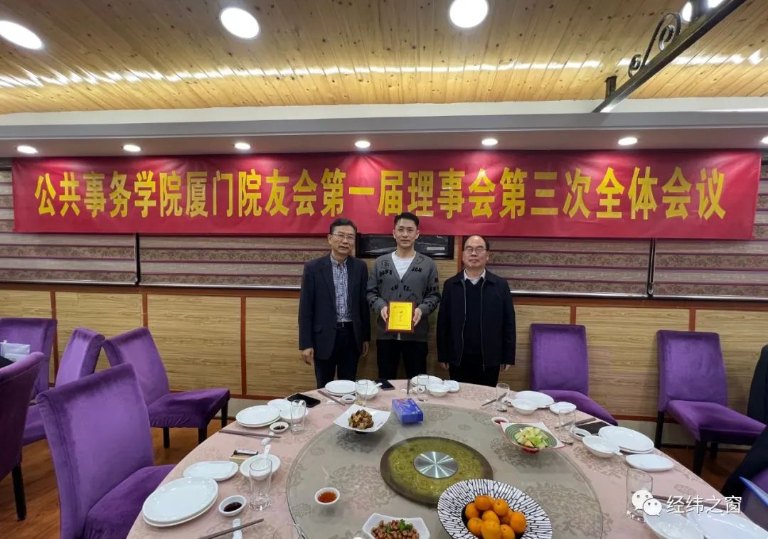 12月25日,公共事务学院厦门院友会会员代表会议暨第一届理事会第三次全体会议召开,总结2021年工作,并正式将MPA院友纳入院友会。学院领导朱仁显院长、宋友良书记、罗思东副院长出席,院友会理事、学院各年级代表参加会议。此次会议新增周文艺等14人为院友会理事,经审议增补贺珍、李朝源、王正中3人为副会长。