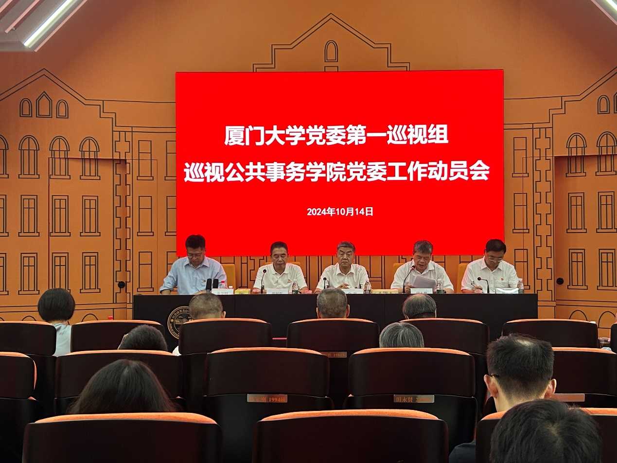 根据十二届校党委第三轮巡视工作部署,10月14日下午,校党委第一巡视组巡视公共事务学院党委工作动员会在公共事务学院召开。校党委副书记、纪委书记、国家监委驻厦门大学监察专员全海,校党委第一巡视组组长邱七星、副组长郑树东和其他成员,校基层党建工作联络员林金枝,校巡视办主任洪真裁出席动员会。公共事务学院、公共政策研究院党政领导班子成员、在职教职工代表和担任过班子成员的退休干部代表参加会议。会议由公共事务学院院长于文轩主持。