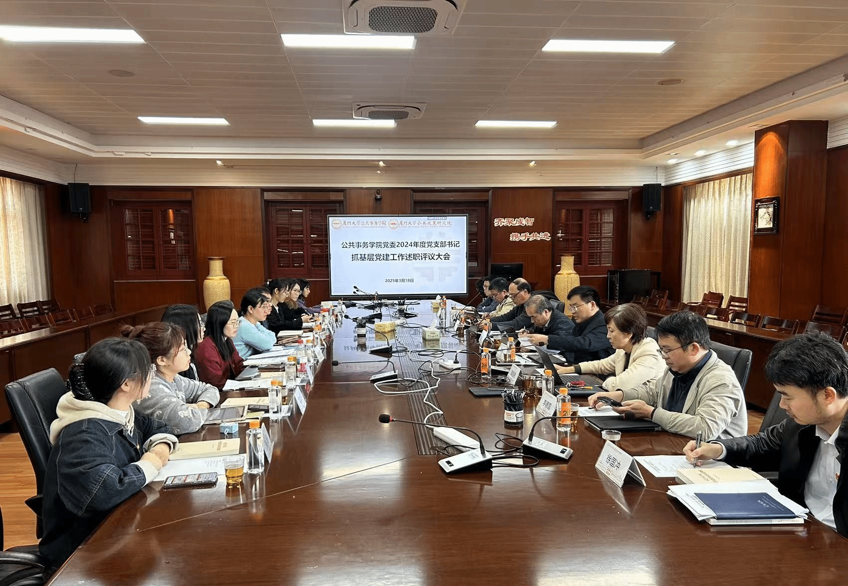 在全党开展深入贯彻中央八项规定精神学习教育之际,为压紧压实基层党组织书记抓党建工作责任,推动全面从严治党向基层延伸,2025年3月18日下午,公共事务学院党委在成智楼301会议室召开2024年度党支部书记抓基层党建工作述职评议会。学校党建工作联络员林金枝到会指导。会议由学院党委书记崔庆炜主持,学院党政领导班子成员、党委委员、师生党支部书记及党员代表参加会议。