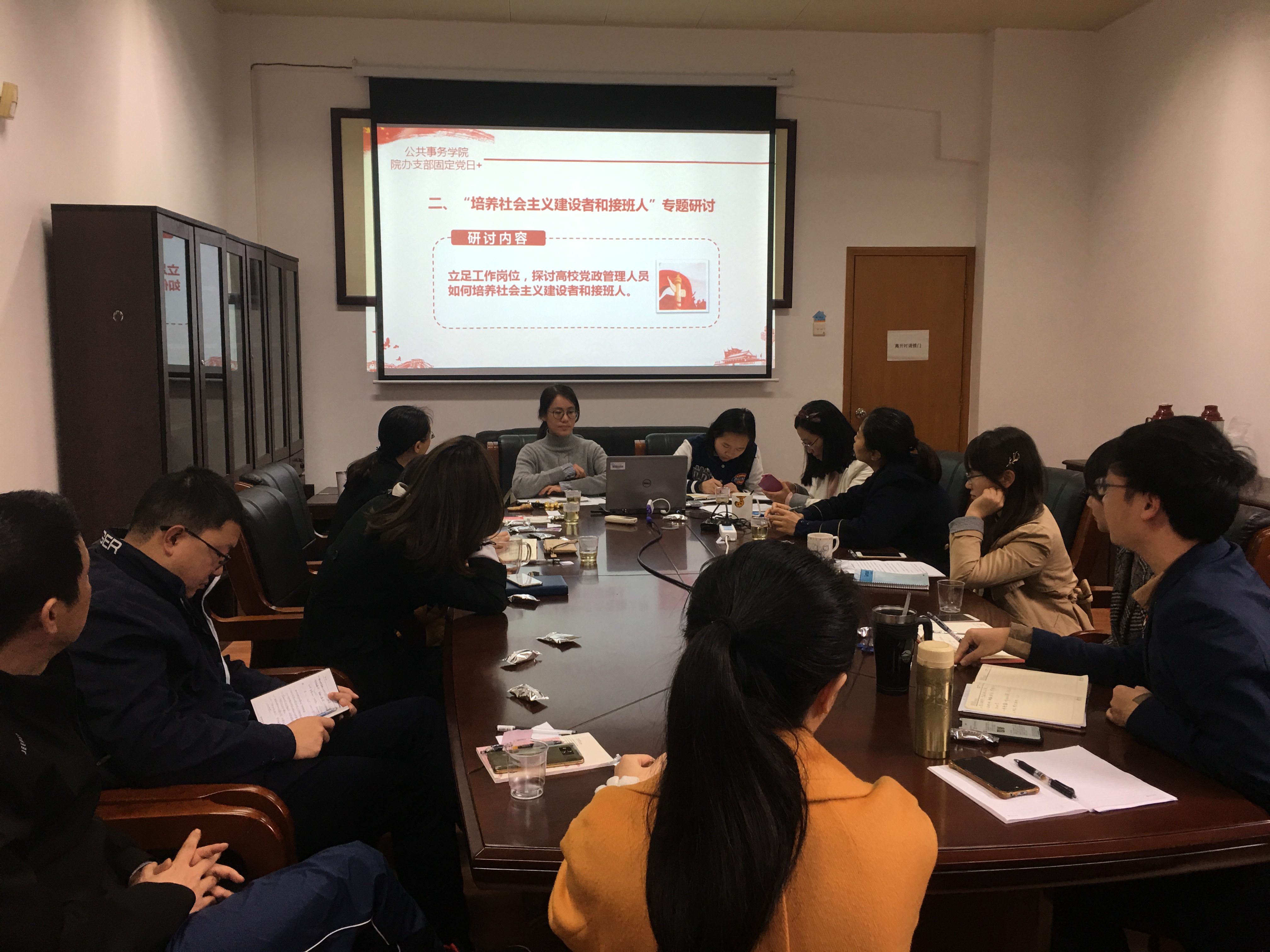 1月7日上午,学院院办党支部在成智楼220会议室开展“培养社会主义建设者和接班人”专题学习会。