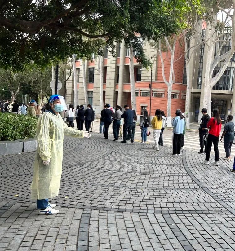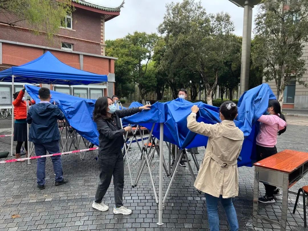 为配合学校开展全员核酸检测,我院教工党员冲锋在前,积极参与志愿服务工作,协助医护人员开展校内全员核酸检测。志愿者们布置核酸检测点,在现场维护秩序,协助医护人员登记扫码……忙碌的身影是志愿者与医护人员为跑赢疫情,守护校园的最美模样。