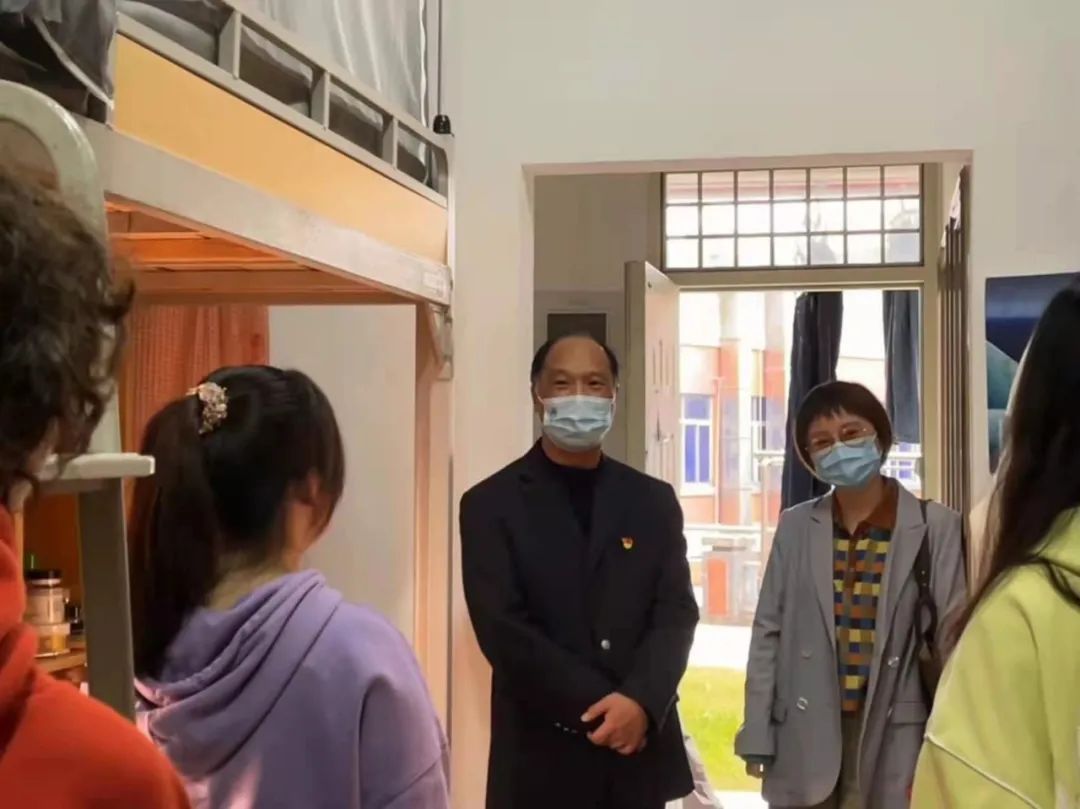 学院领导老师走访宿舍园区,了解防疫情况,赠送防疫物资,鼓励同学积极配合学校学院的防疫政策。