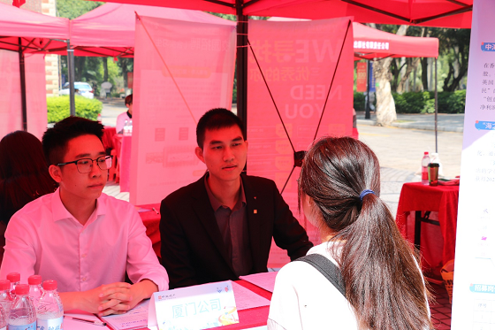 前来应聘的同学带着精心制作的简历,怀揣梦想、踌躇满志,积极投递简历,与招聘人员进行交流,充分展现自己的优势。同学们或是意气风发、激情昂扬,或是略带青涩懵懂但也落落大方,展现了厦大的学子的良好风貌。