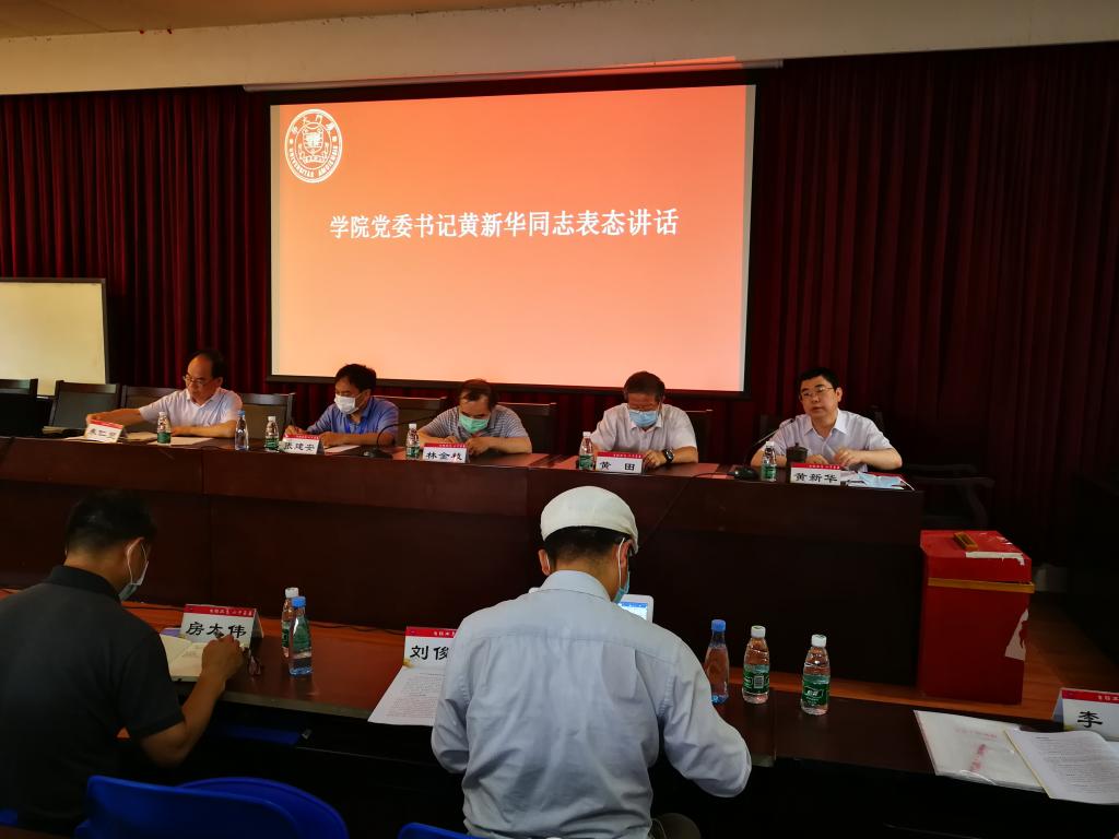 学院党委书记黄新华代表学院党政领导班子和全院师生作表态发言。他表示,本次校党委来我院巡察,既是对学院领导班子及其成员特别是主要负责人贯彻有关精神、落实全面从严治党主体责任等情况的监督检查,也是校党委对学院党政班子的一次综合考评,是对学院工作的有力支持和促进。因此,学院一定会高度重视,积极支持,认真落实好巡察组的各项要求,积极配合巡察组开展工作,确保巡察工作顺利进行。
