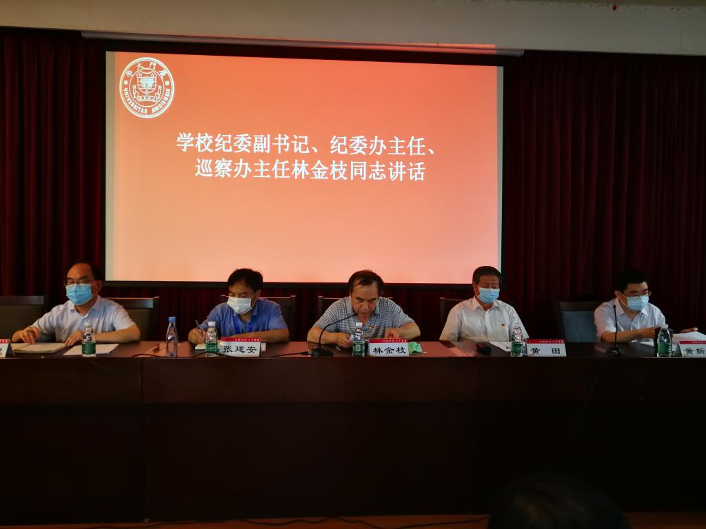 校纪委副书记、纪委办主任、巡察办主任林金枝受巡察领导小组委托,对本轮巡察提出了四点工作要求:一要提高政治站位,深刻认识政治巡察的重要意义;二要增强政治意识,推进我校全面从严治党工作和各项事业持续健康发展;三要坚持问题导向,不折不扣做好校内巡察工作;四要强化政治担当,切实加强巡察工作的组织领导。同时,他还希望被巡察单位自觉提高政治站位,准确把握疫情防控和全面从严治党的形势,主动支持巡察组的巡察工作,保证巡察工作的顺利完成。