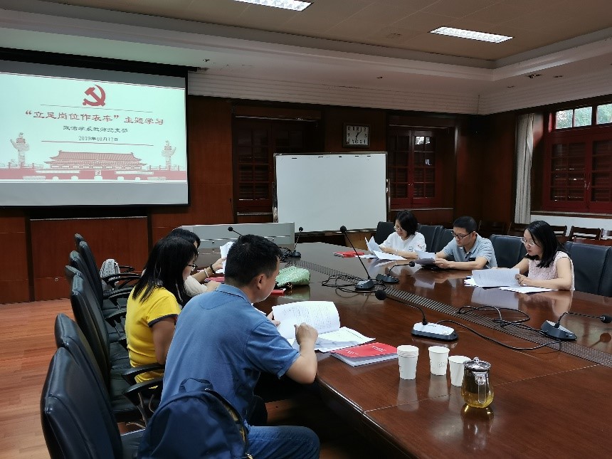 2019年10月12日下午,政治学系教师党支部举行“立足岗位作表率”主题学习活动,结合政治学系近来的本科生和研究生培养方案修订工作,开展履职尽责与推动学科建设的专题研讨会,旨在倡导教师党支部学习张富清同志履职尽责、矢志奉献的精神,在教学科研的本职岗位上为推动政治学学科体系建设积极思考,尽个人绵薄之力。