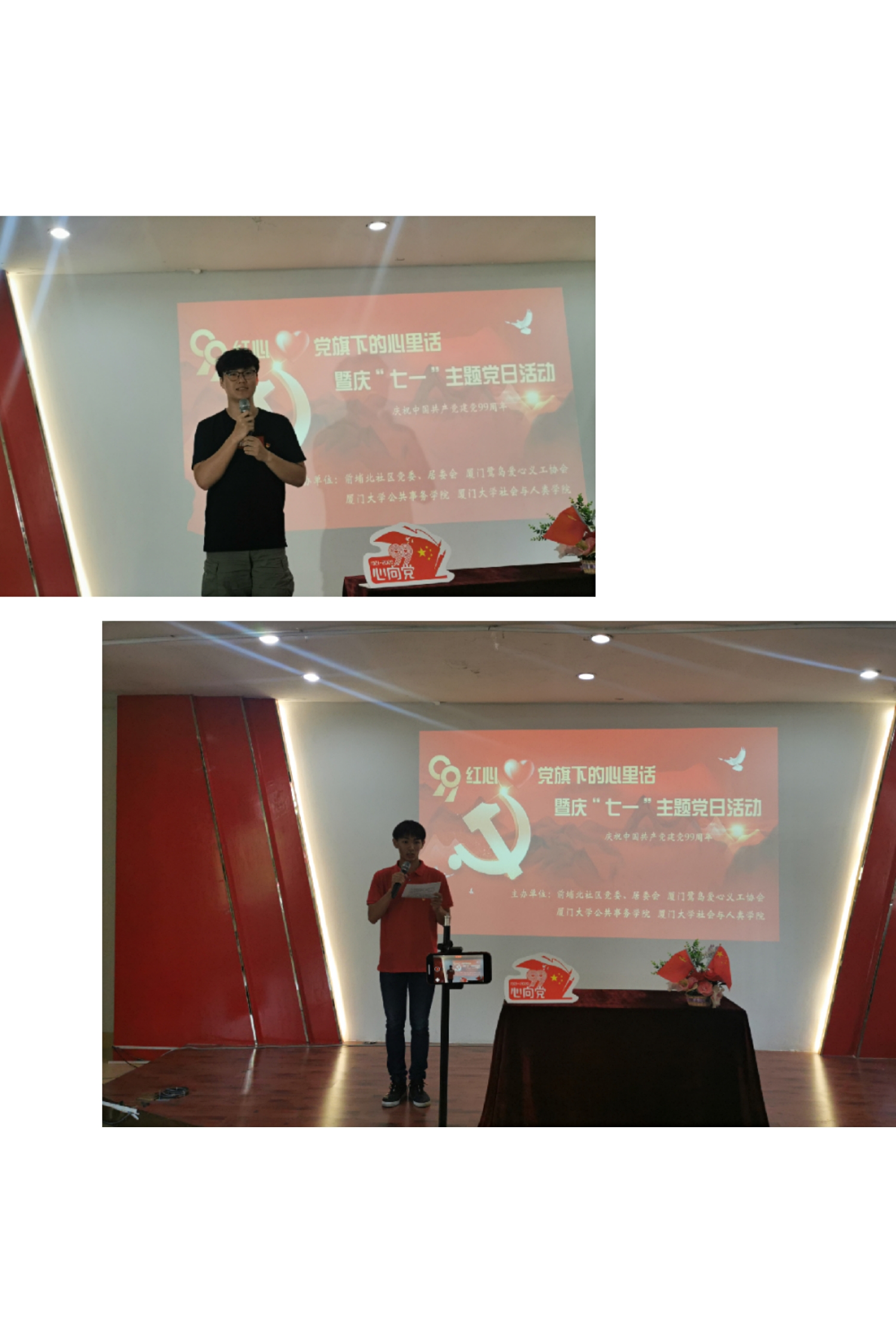 90后、00后的学生党员代表以青春洋溢的形式和大家分享了年轻一代党员的成长故事,表达了作为党的事业接班人的信心、使命和担当。公共事务学院00后的学生代表李叮和李保祥更是用一段精彩的舞蹈表达了自己对党的99岁生日的美好祝福。在年轻一代的党员身上,我们看到了党的新鲜血液充满着生命力,这是红色基因传承的力量!