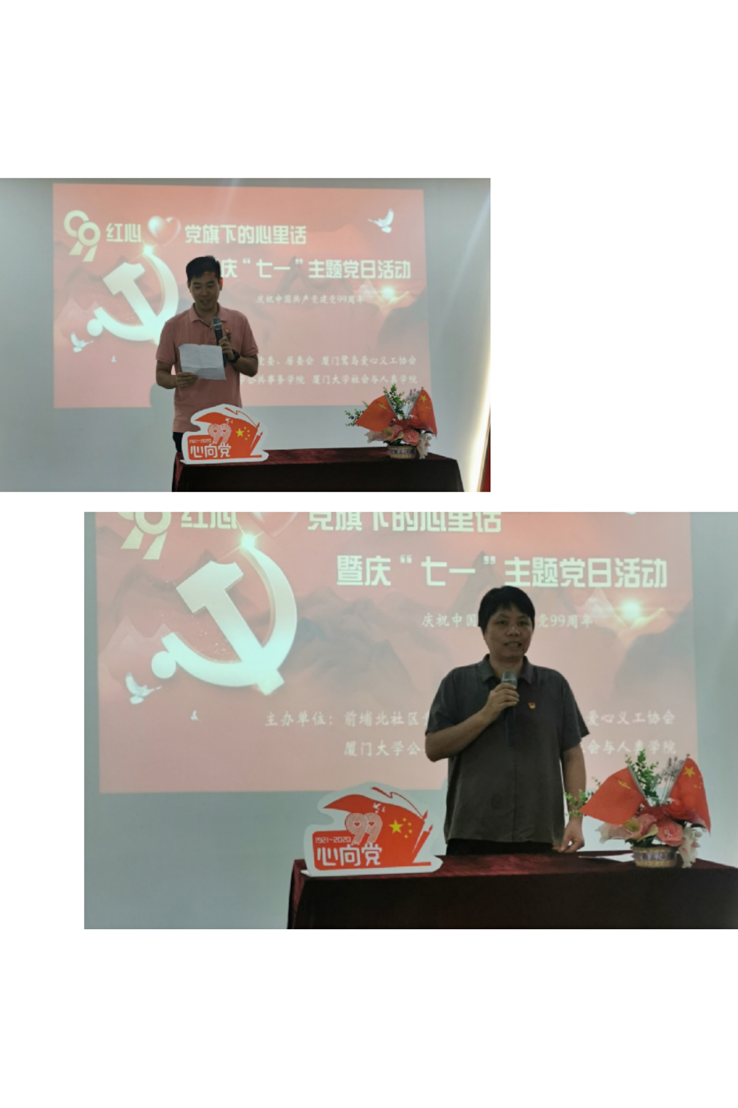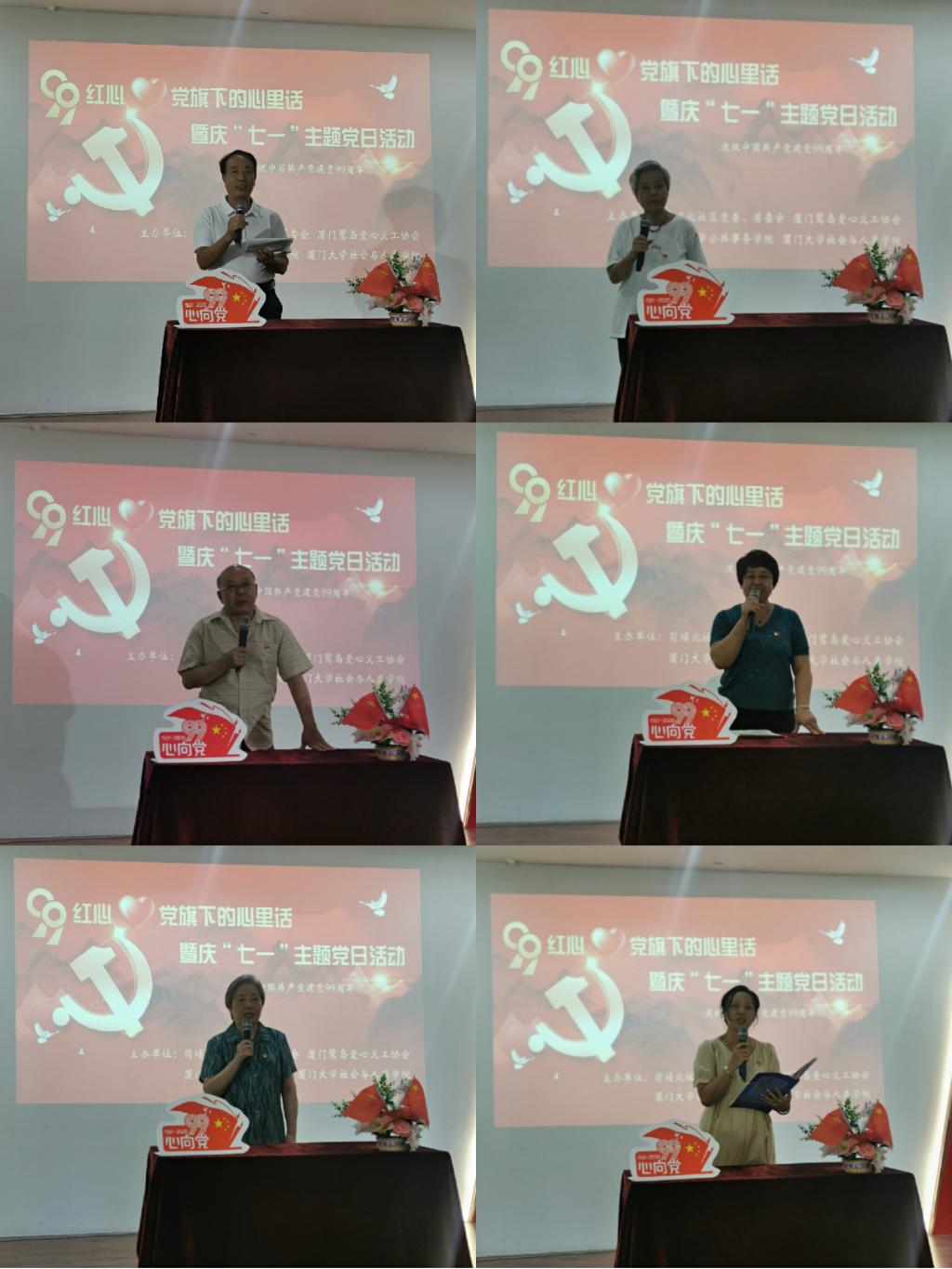 6月29日,公共事务学院、社会与人类学院与前埔北社区共同举办了“99红心·党旗下的心里话”代际故事分享会暨庆“七一”主题党日活动。公共事务院党委副书记林盛铨、社会与人类学院党委副书记毛毛,公共事务学院团委书记徐莹、团委副书记苏毅辉,社会与人类学院团委书记石林伟、辅导员冉丽莎带领学生党员代表一同走进社区,与前埔北社区的老党员们面对面交流,共同参加庆“七一”主题党日活动。