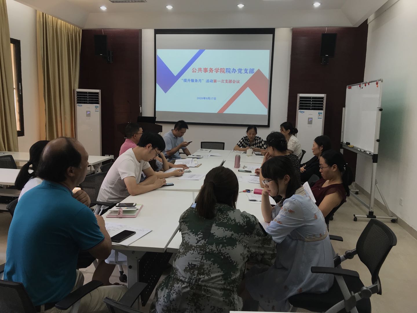 根据校党委第四巡察组对我院巡察反馈意见以及学院相关整改部署,公共事务学院院办党支部开展“提升服务月”系列活动,旨在用好巡察成果、明确职责分工、提高服务能力。9月17日上午,院办党支部在成智2-110会议室举办了“提升服务月”主题党日活动,活动邀请了办公室非党员同志一同参加。