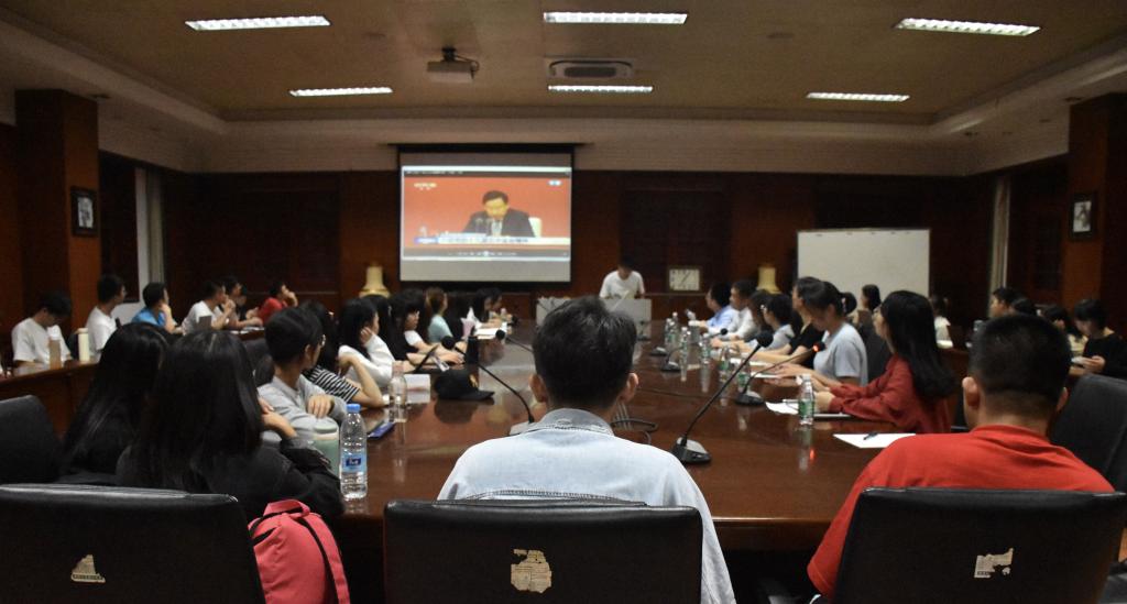 2020年11月6日,公共事务学院师生党支部在成智一301会议室联合开展十九届五中全会精神学习活动,活动由2020级硕士生党支部书记马菁主持。