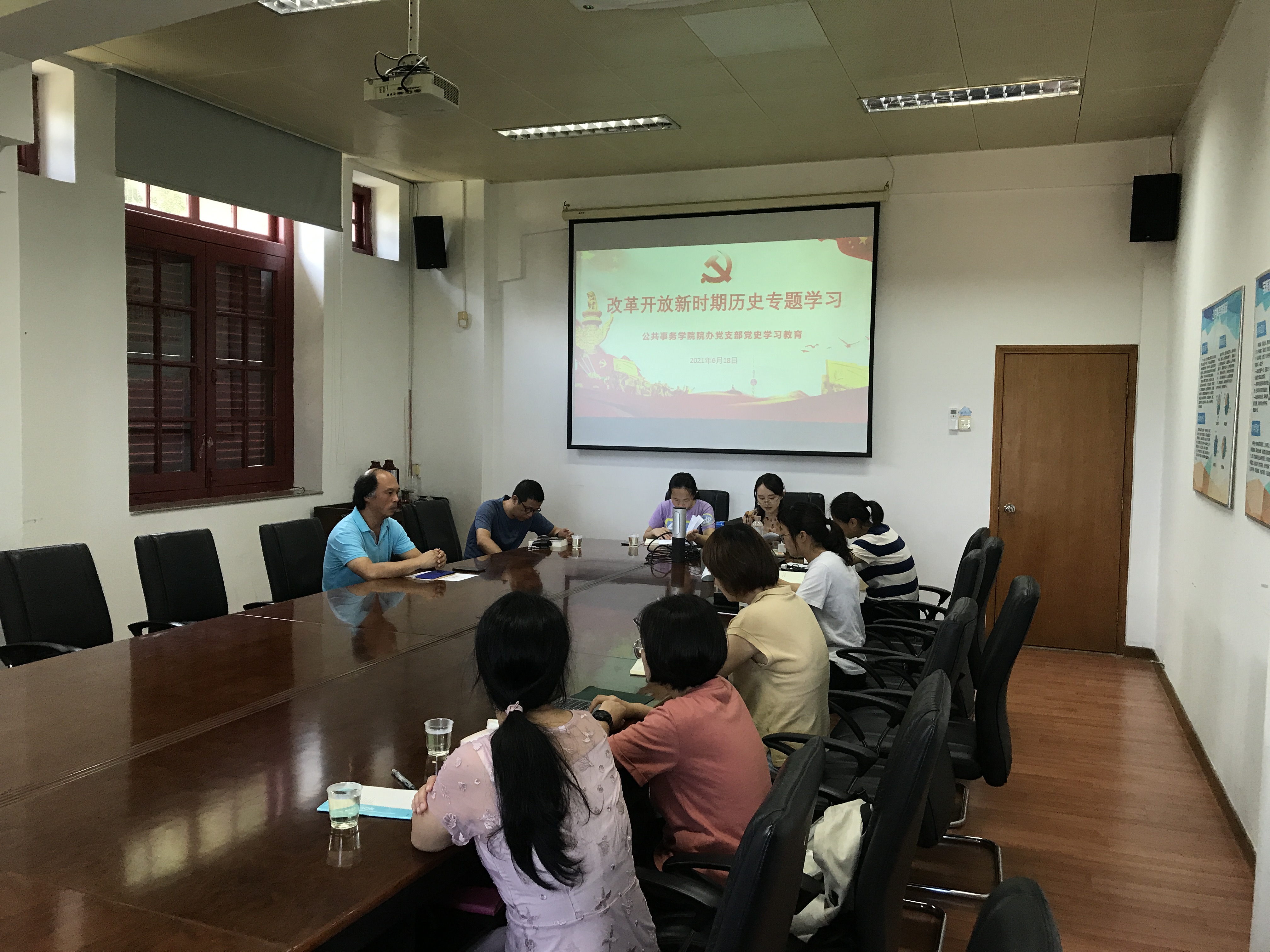 6月18日上午,公共事务学院院办党支部在成智楼221会议室围绕“改革开放新时期历史”举办党史学习教育第三次专题学习活动。