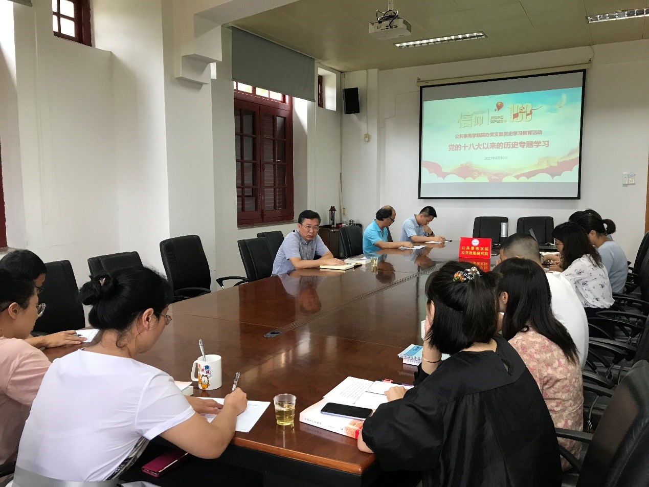 6月30日上午,公共事务学院院办党支部在成智楼221会议室开展党的十八大以来的历史专题学习活动。