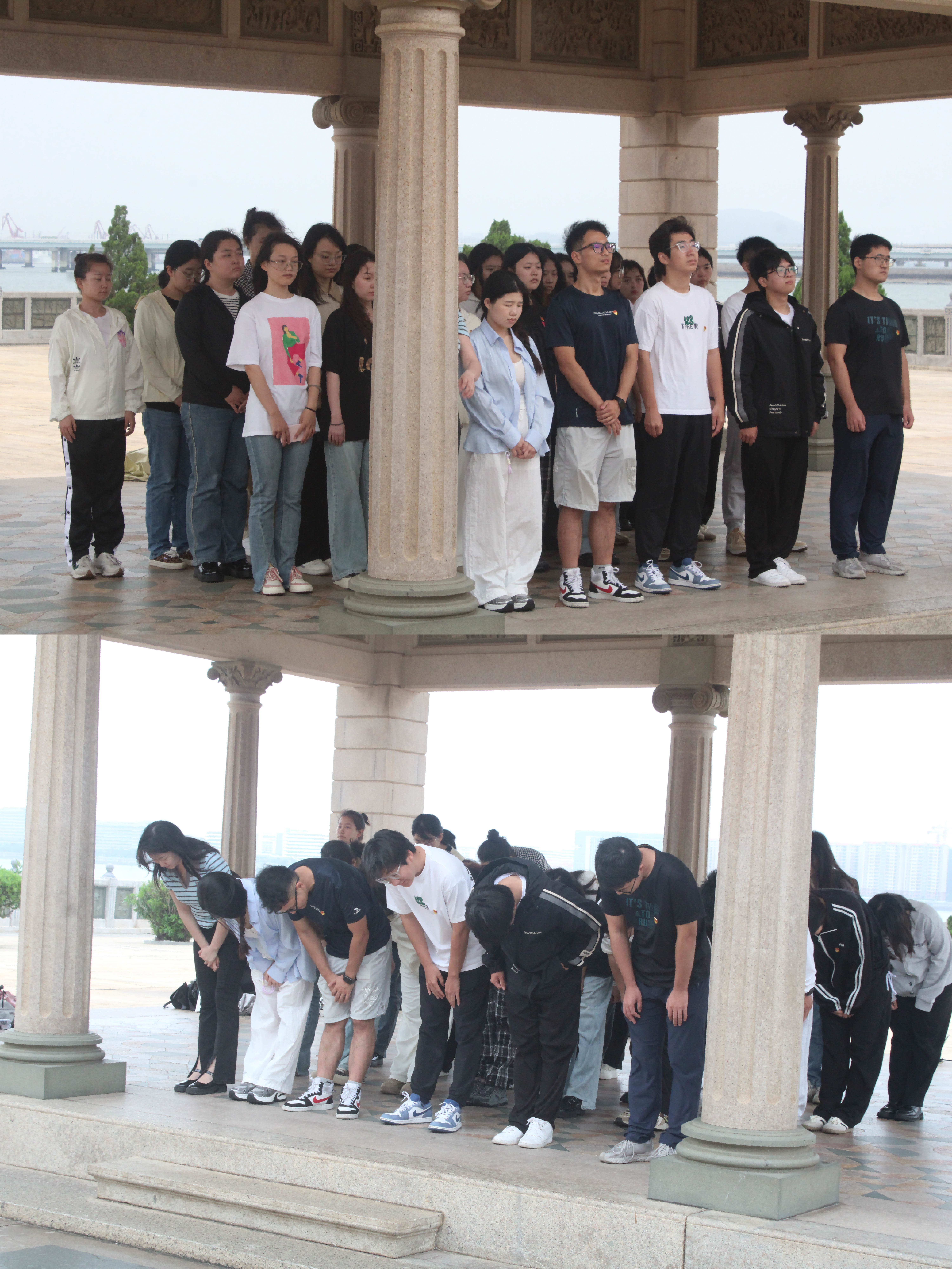 今年正值校主陈嘉庚先生诞辰150周年,全体学生党员在参观陈嘉庚纪念馆之前,一同前往集美鳌园陈嘉庚先生墓祭扫,并全体肃立默哀,向陈嘉庚先生墓行三鞠躬礼,表达深切缅怀与哀思之情。