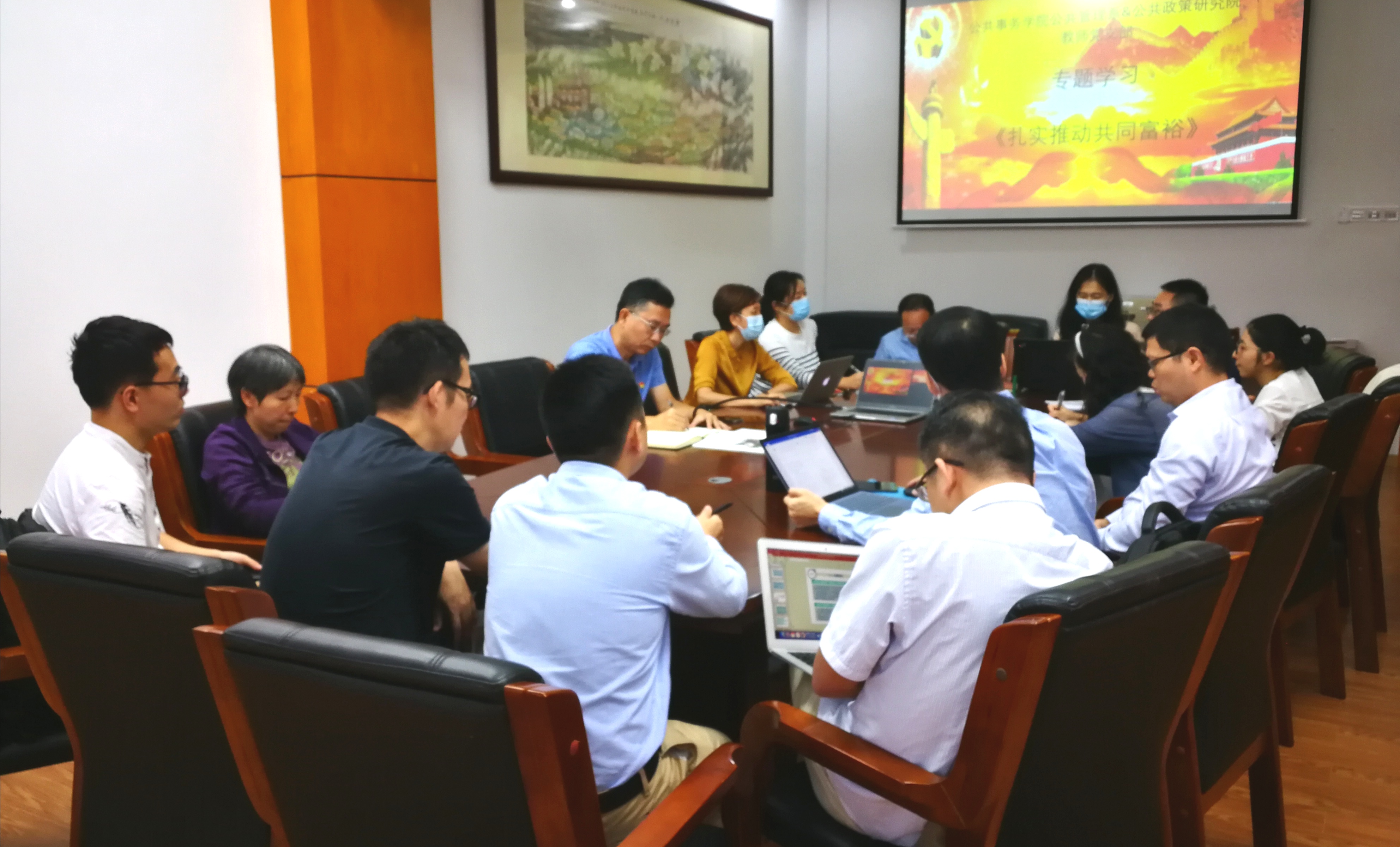 近日,公共事务学院公共管理系教师党支部、公共政策研究院教师党支部在成智楼220会议室围绕习近平总书记在今年第20期《求是》杂志发表的重要文章《扎实推动共同富裕》联合开展“双周政治理论学习”。学院党委书记宋友良参与本次活动。
