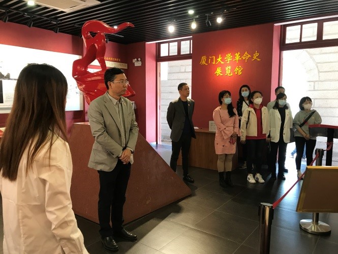 支部党员首先来到厦门大学革命史展览馆。该馆是学校红色文化基因培育与传承的重要阵地,是党史学习教育的重要基地。在讲解员的生动讲述中,大家依次参观了“八闽革命摇篮” “坚持红旗不倒” “抗日救亡基地” “东南民主堡垒”四个单元,重温了建校到新中国成立期间厦大师生学习宣传马克思主义、成立福建第一个党组织、投身革命斗争、反抗外来侵略、争取民族解放的光荣历史。