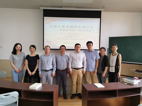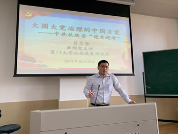 2019年10月25日,在成智楼108教室,公共政策研究院教师党支部书记吕志奎为支部党员带来一场《大国大党治理的中国方案——中共从延安“进京赶考”》主题党课,支部党员共同聆听了党课。