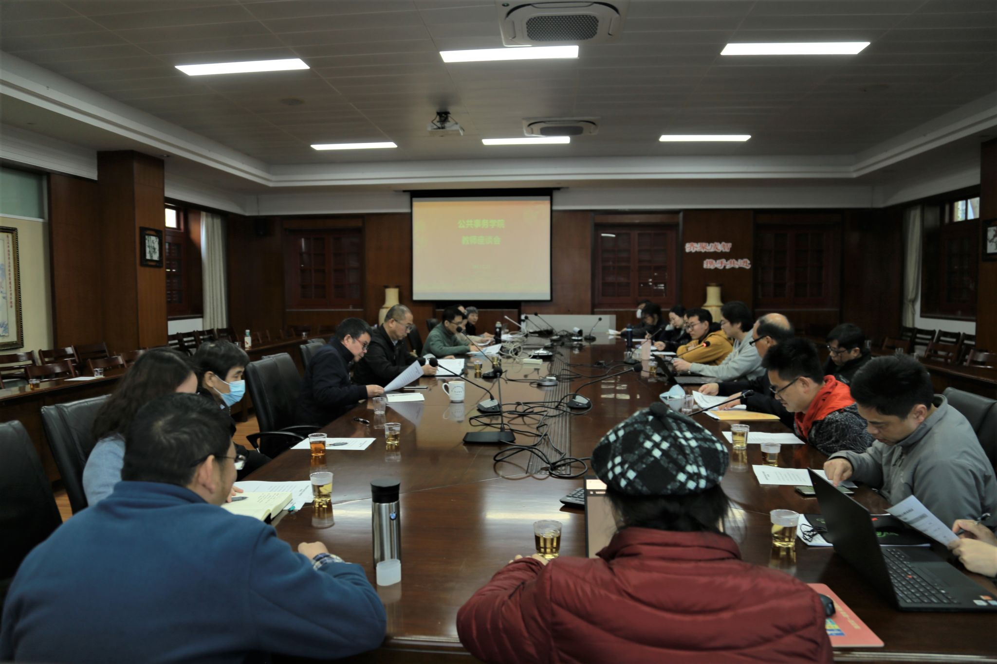 公共管理系教师座谈讨论会在成智楼301会议室举行。与会教师重点围绕教改项目建设、教材建设、课程组建设、加强师生沟通交流等方面深入交流,并提出完善教改项目建设与教材建设激励机制、制定课程组标准化管理规定、搭建师生沟通交流平台等意见建议。
