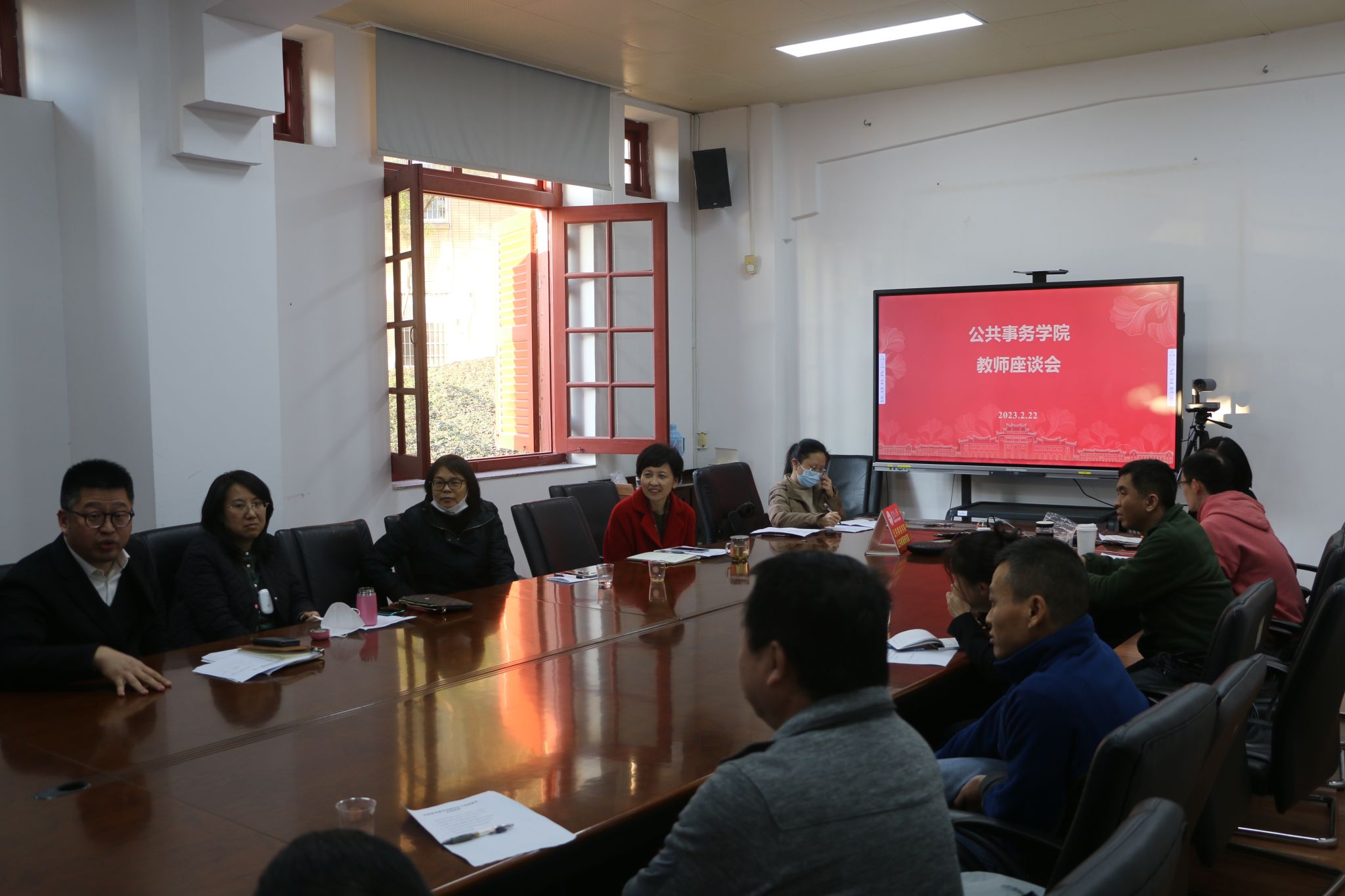 为迎接2023年本科教育教学审核评估,深入研讨新时代教育教学思想理念,充分听取广大教师的意见建议,公共事务学院于2023年2月22日召开教育教学思想讨论会和教师座谈会。学院党政领导、系主任、副系主任以及全体教职工积极参与,深入研讨交流。