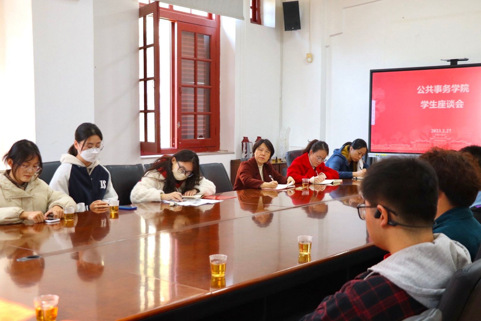 随后,公共管理类(含政治学类)、行政管理、政治学与行政学专业的各年级学生代表依次发言,结合自身的学习感受与其他同学的会前反馈,围绕课程设置、课程考核、科创活动、心理健康、就业服务、职业规划等方面,畅所欲言,提出了自己的看法与建议。与会老师认真倾听并详细记录,与同学们互动交流,耐心解答困惑。