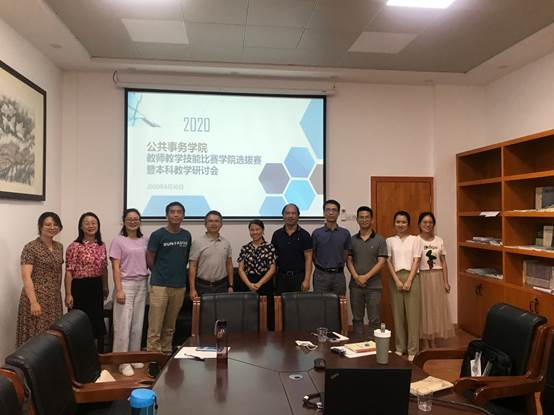2020年6月30日下午,公共事务学院教师教学技能比赛暨本科教学研讨会在成智楼220顺利举办。在本次教学技能比赛中,公共管理系李德国副教授以公共服务的全周期管理为主题,进行了20分钟的教学展示。课程内容以推进社会公平幸福,促进阶层流动活力为中心深入探究了大城市现代化治理中青少年公共服务支持体系的建设问题。学院工会主席、党委副书记林盛铨老师、学院副院长李艳霞教授、夏路教授、漆亮亮副教授、林雪霏副教授、林亚清副教授、刘建政副教授、周月鹏副教授、庄玉乙助理教授和学院教学秘书蔡妮妮老师参加了此次教学研讨。参会老师一致认为,李德国老师所授课程的主题和内容具有很强的理论与现实意义,教学设计科学,教学方法合理,授课节奏精准,教学效果好。在后续的教学研讨中,参会老师从教研关系、学生吸收知识的规律、授课内容、课件制作、语音语速、教学形式等方面深入的探讨,与会老师交流分享了各自在教学过程中的经验与体会。