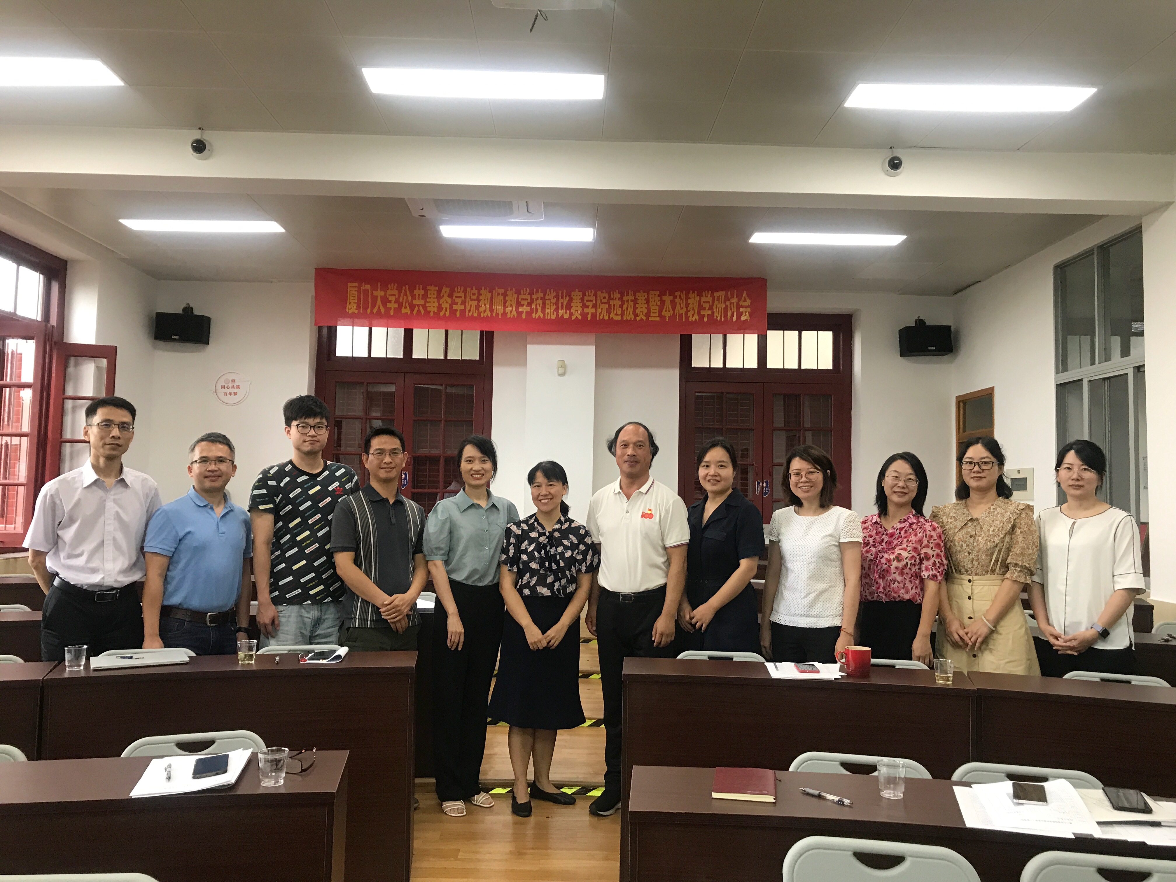 为进一步加强教师队伍建设,增强青年教师教育教学基本技能,提升青年教师课堂教学质量,根据厦门大学第十六届教学比赛工作安排,2021年6月25日上午,公共事务学院教师教学技能比赛暨本科教学研讨会于成智楼108顺利举办。学院党委副书记、工会主席林盛铨、学院副院长李艳霞教授以及夏路教授、李德国副教授、漆亮亮副教授、林雪霏副教授担任本次教学技能比赛评委,林亚清副教授、刘建政副教授、常晶晶助理教授参与本次教学技能比赛。